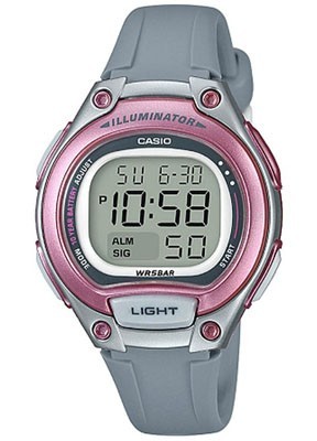 カシオからシンプルでキュートなレディースサイズのスポーツウォッチが登場。長期間の使用でも電池切れの心配のない長寿命10年電池の採用や、暗い場所でも時間が分かるLEDライト、ランニングやスポーツに便利な1/100秒ストップウォッチ、水回りでも安心して使用できる5気圧防水機能などが付いて日常のファッションだけでなくスポーツにも便利です。