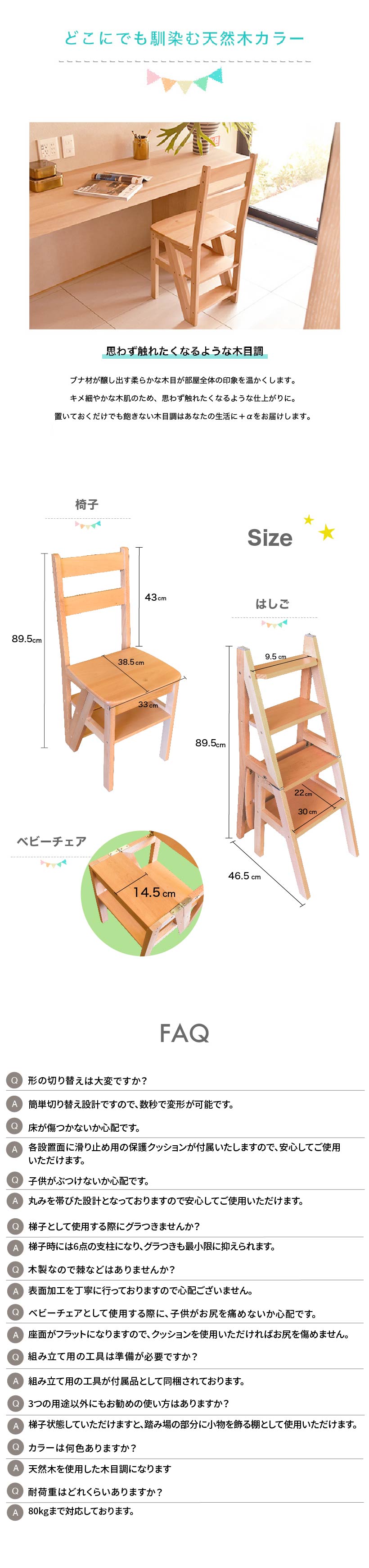 はしご約46.5×約9.5×89.5cmいす約33×約38.5×約89.5cm