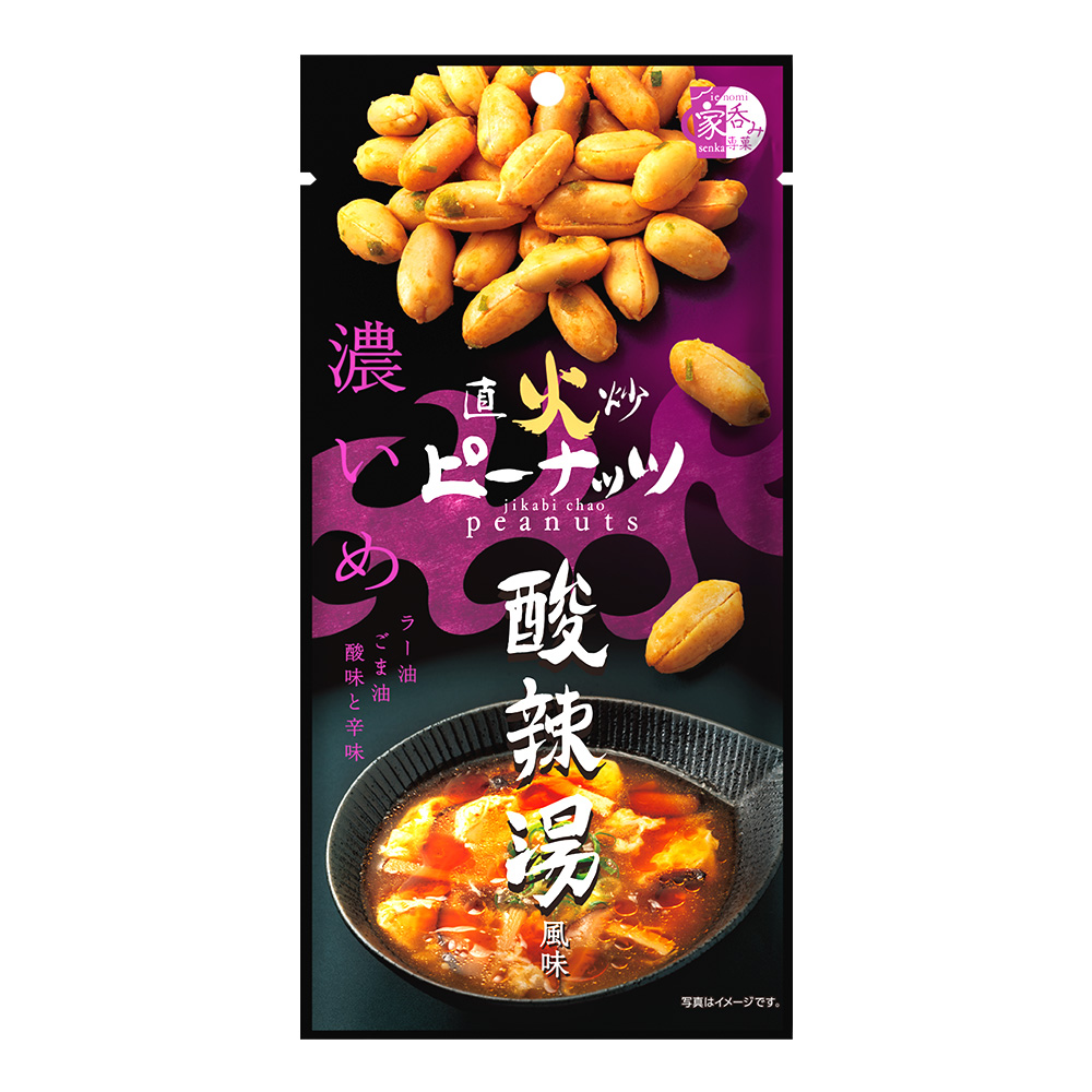 ごま油とラー油を使用し、直火釜でじっくりと炒めたピーナッツを、酸味・辛味のきいた酸辣湯風味に仕上げました。一度食べるとクセになる本格的な味わいです。