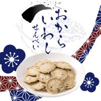 馬鈴薯でん粉の生地にいわし粉とおから粉を存分に練りこみ、焼き上げました。カルシウムと食物繊維がたっぷりの健康応援おかしです。