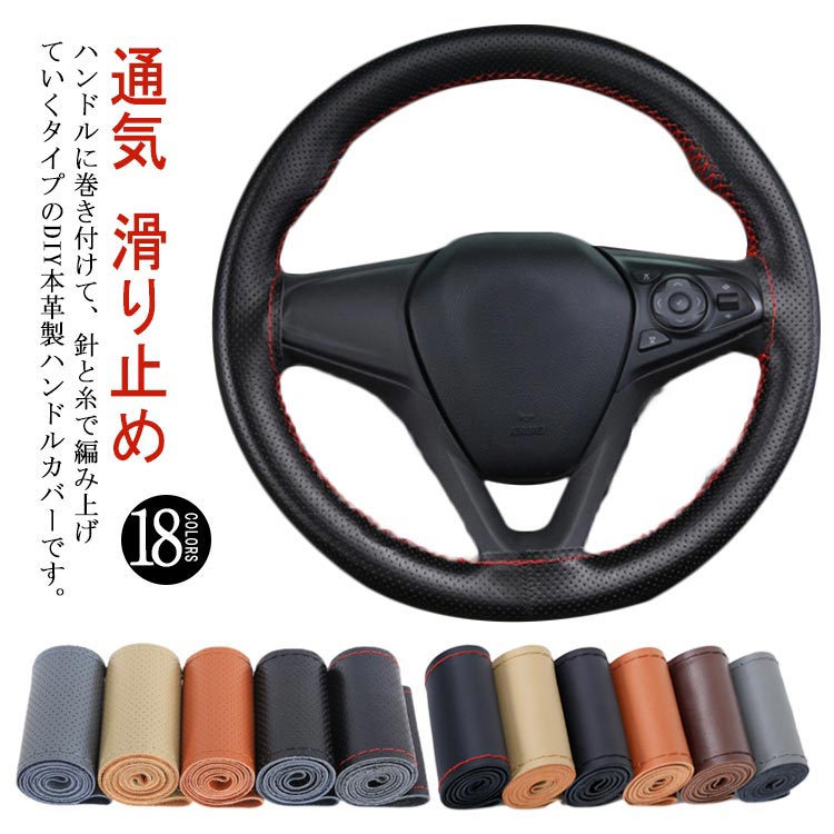 | ハンドルに巻き付けて、針と糸で編み上げていくタイプのDIY本革製ハンドルカバーです。 革特有のしっとりと手に馴染む本革独特の感触をお楽しみいただけます。 本革製の編み込みハンドルカバーは握った時にフィット感がある。 ハンドルカバーの表面に小さな穴を使用して、下に柔らかい滑り止めるのデザインです。 縫製の方法:最初にステアリングにカバーを均一 にかぶせ、びったりにフィットするように調整してください。 縫い始めの糸は内側のステッチに結び固定してください。この結び目は ほどけないようにしっかり固定して ください。 次に反対側の表面に有るステッチに糸を通し、合わせ目を絞めてください。同様に一回通す毎に絞めてください。 順番に絞めていき、もし両側のステッチにズレが生じた場合、適度にステッチを一個飛んだり一針増やしたりして調整してください。 ステッチを一個飛ばして縫っても結構です。この縫い方の方が早いです。 縫いながら手で調整してください。 ひとつ飛ばしの縫製は時間と糸を 節約でき、同様の効果が有ります。 | |