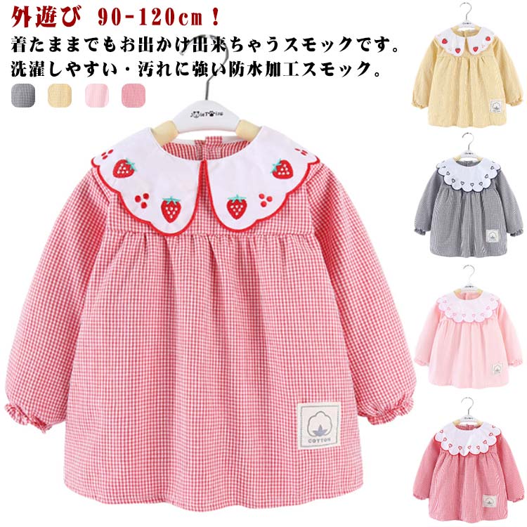 | 90-120cm!着たままでもお出かけ出来ちゃうスモックです。洗濯しやすい?汚れに強い防水加工スモック。 お洋服のような可愛いデザインの長袖スモック、女の子が大好きに間違いなし。 可愛いスカラップ襟に繊細な刺繍が施され、まるでおしゃれなブラウス。外出時恥ずかしくないおしゃれにスモックを着用できます。 長袖タイプなので、お洋服はいつでも清潔にいられる。 胸部分は防水加工で、お食事など時もお洋服を汚せず安心。 すっぽり被るだけで可愛く汚れ防止◎ お家はもちろん、幼稚園や保育園でも大活躍に間違いなしです。 | |