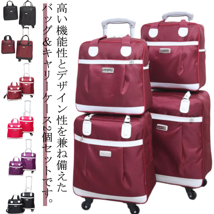 | 高い機能性とデザイン性を兼ね備えたバッグ&キャリーケース2個セットです。 撥水加工を施した軽量かつ折り畳み式のキャリーバッグ。 4輪タイプで安定感抜群です。機内持ち込みも可能サイズ エコバッグの代わりにも使えます。 キャリーバーの長さ段階調整が可能。 ナイロン製なので、丈夫で撥水効果も◎。 使わない時折りたたんでコンパクトに収納可能。 前ポケットもしっかり付いているので、ちょっとした時に取り出したい旅のパンフレットや資料なども気軽に入れられます。 男女兼用で使えるシンプルなデザイン。 | |