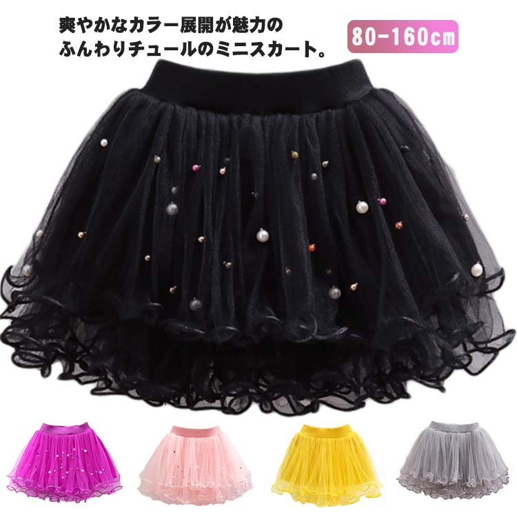 プリンセススカート 春秋服 キッズ ミニスカート ボリューム 子ども服 チュチュ チュールスカート 子供服 フレアスカート フレアスカート パール ふ