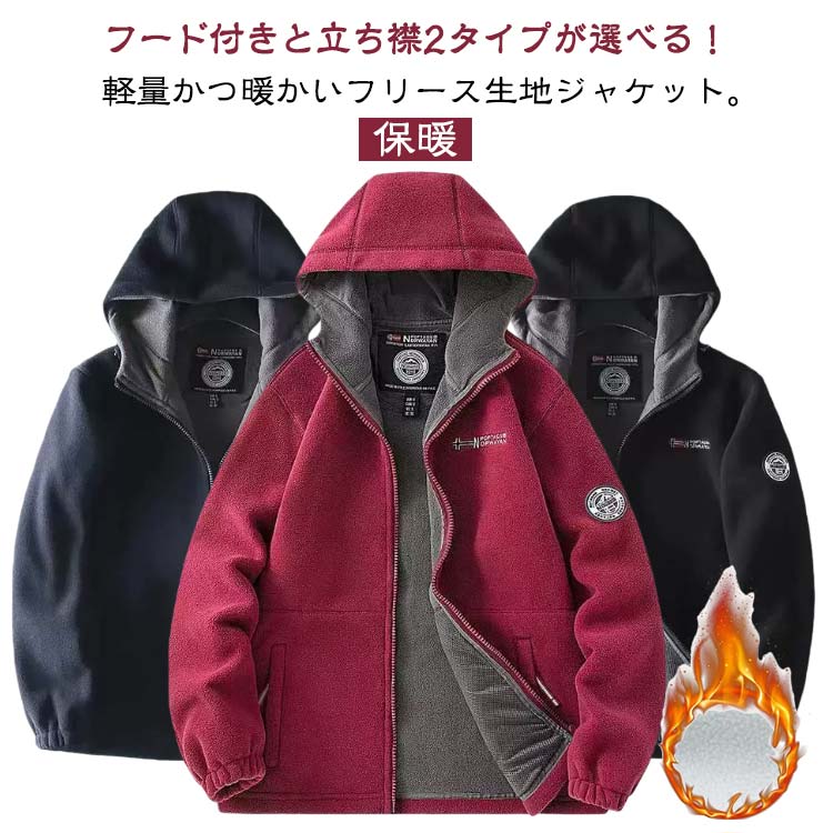 | フード付きと立ち襟2タイプが選べる!軽量かつ暖かいフリース生地ジャケット。 秋冬ウェアに不可欠な保温性の高さで人気のフリース素材は見た目通りの柔らかさと優しく包まれるような肌触りで着心地でも評価が高く長年、多くの方から愛されてきました。 フロントはジッパー開閉仕様! 素材のもつ暖かみを感じられる秋冬シーズン一押しの一着です。 | |