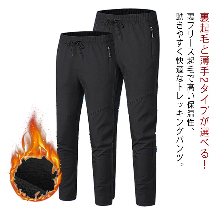 | 裏起毛と薄手2タイプが選べる!裏フリース起毛で高い保温性、動きやすく快適なトレッキングパンツ。M-5XL! 生地裏面には肌触りの滑らかな裏起毛フリース素材を使用し、秋冬時期のアウトドアや屋外での作業でも暖かさをしっかりキープ。 縦にも横にも伸びるストレッチの機能を持つ素材。 表地はしっかりとした防水・防風素材。 登山やサイクリングなど、アウトドアやスポーツにはもちろん、普段使いにもオススメの一本です。 | |
