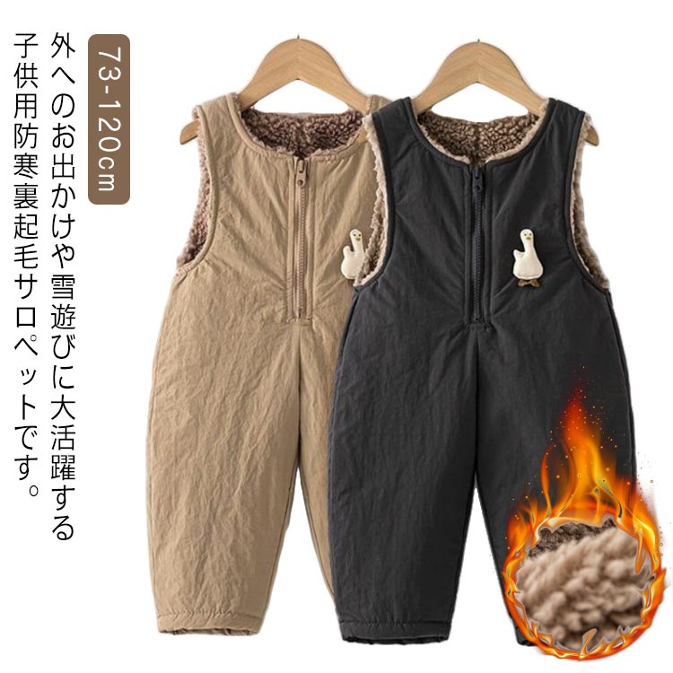 | 外へのお出かけや雪遊びに大活躍する子供用防寒裏起毛サロペットです。ベビー