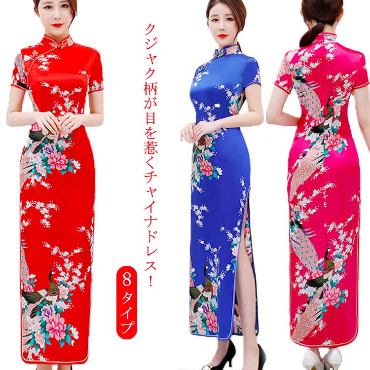| クジャク柄が目を惹くチャイナドレス! 深いスリットは足長効果バツグンです。 全体の生地もしっかりしているので高級感もありおすすめのコスチュームです。 着るだけで華やかになり、撮影会などにも? パーティーやイベントなどでも使える本格的なチャイナ服です? | |