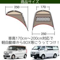 ■おすすめポイント取り付け簡単で、コンパクトに収納できるから車の中でもかさばりません。しかも軽くて丈夫!海で釣りや山でのキャンプ、車中泊などでも大活躍!タープの中は屈まずに入れるくらい広々しています。2〜3人くらいがちょうどいいです。テント内に熱がこもりにくく、快適に過ごせます。アウトドアに欠かせない、ハイエースやワンボックス、ステーションワゴンタイプの車に取り付けて建てる、新しいタイプの自立式タープです。吸盤を使ってボディと固定するのでキズをつけず安心。車の居住空間を拡大するので、オートキャンプや日帰りドライブ・釣りなど、 ちょっとした目的で簡単に使えるので、車のトランクに常備したいアイテムです。