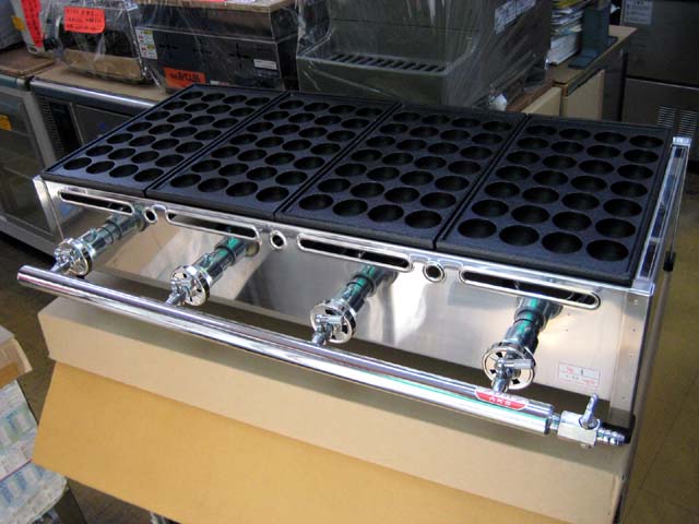 スタンダードな業務用たこ焼き器の4丁掛。プロパンガス(LPG)用です。
