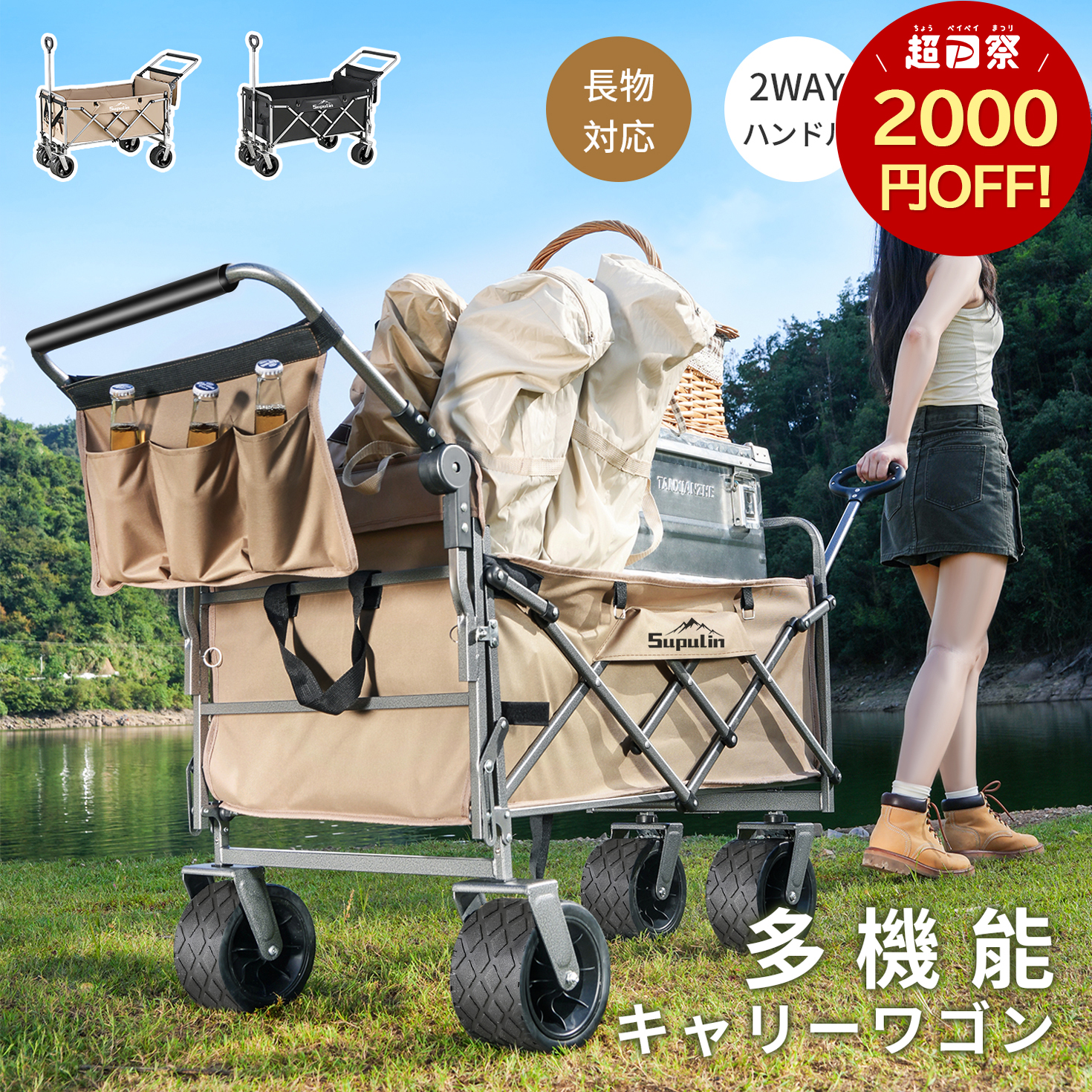 キャリーワゴン アウトドアワゴン 多機能 キャリーカート 花見 2wayハンドル キャリーケース BBQ 折りたたみ キャンプカート キャンプ 高耐荷重138KG コンパクト