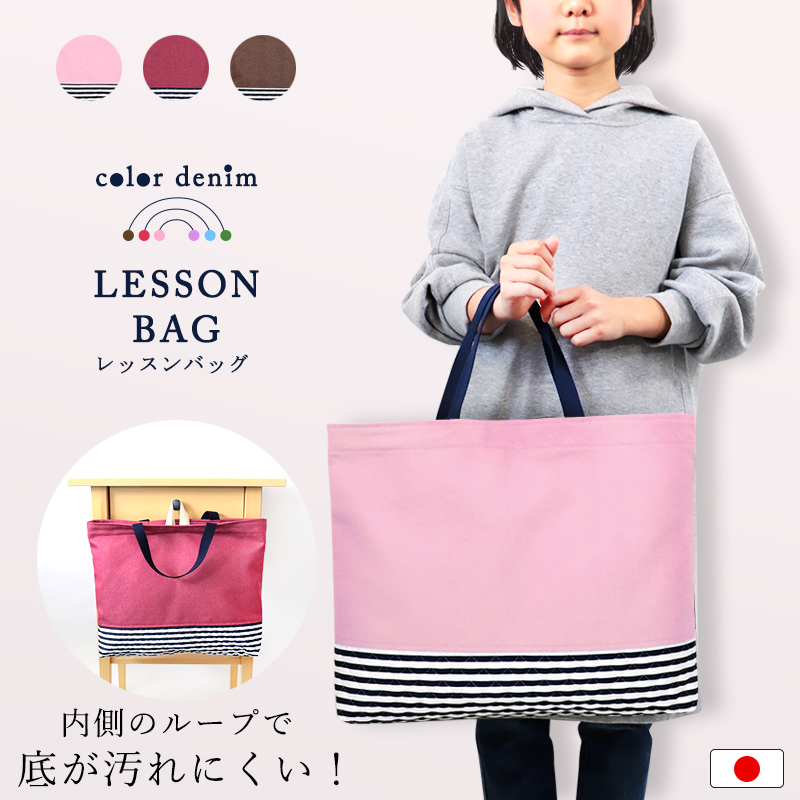レッスンバッグ キルティング 日本製 大きめ 女の子 カラーデニム 通園バッグ 絵本袋 図書袋 シンプル //メール便 なら 送料無料