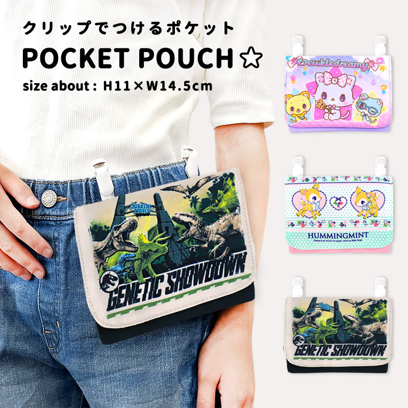 ミュークルドリーミー ハミングミント サンリオ ジュラシックワールド 恐竜 ダイナソー クリップ付き ポーチ 腰 付ける 男子 女子 キッズ 子供 入園準備 入学準備 入園祝 卒園祝 入学祝 プレゼント 入園グッズ 入学グッズ 保育園 幼稚園 こども園 小学生 小学校