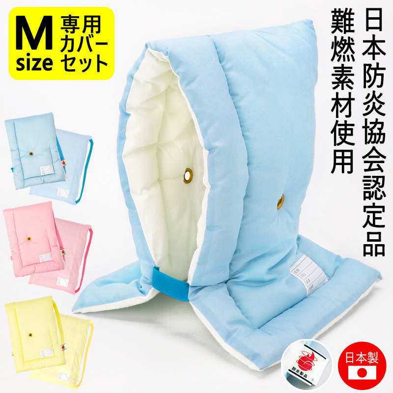防災頭巾 防災頭巾カバー セット 小学校 日本防炎協会認定品 日本製 キッズ 子供 入園 入学 ジュニア用 Mサイズ 小学生 防災ずきん 難燃素材使用 /宅配便発送