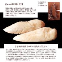 原材料:鶏肉(国産)、燻製調味料、しょうゆ、白だし/調味料(アミノ酸等)、くん液、カラメル色素、カロチン色素、甘味料(天草)、(一部に鶏肉・小麦・大豆・さばを含む)