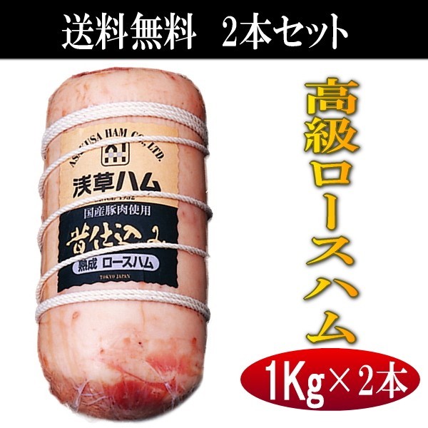 〇12/24以降の発送になります 冷凍品との同梱包不可 送料無料 2本セット 浅草ハム 昔仕込みロースハム 1Kg×2本 浅草で生まれて80余年、伝統の味