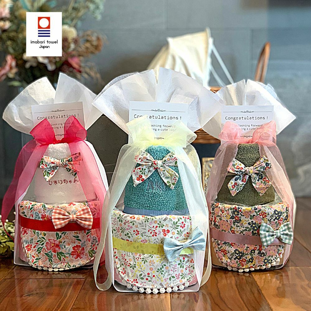 リバーシブル おむつケーキ 出産祝い ヘアバンド リボン 名前入り イニシャル 刺繍 今治タオル オムツケーキ よだれかけ ビブ 女の子 クリスマス 爆買