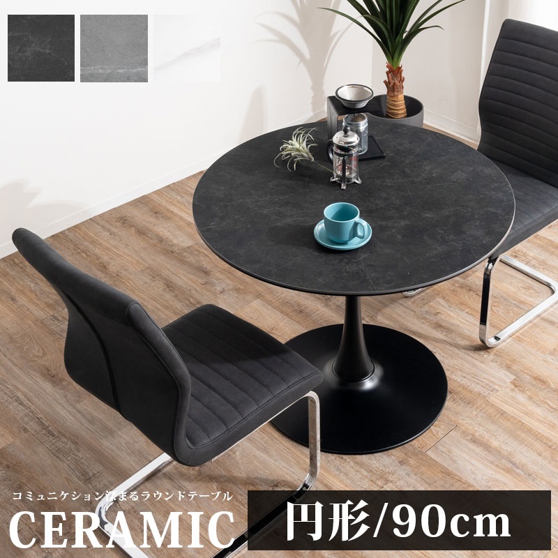 ダイニングテーブル 幅90cm セラミックテーブル 丸テーブル ラウンドテーブル カフェ 2人掛け 4人掛け ポラリス グレー/ホワイト/ダークグレー 送料無料