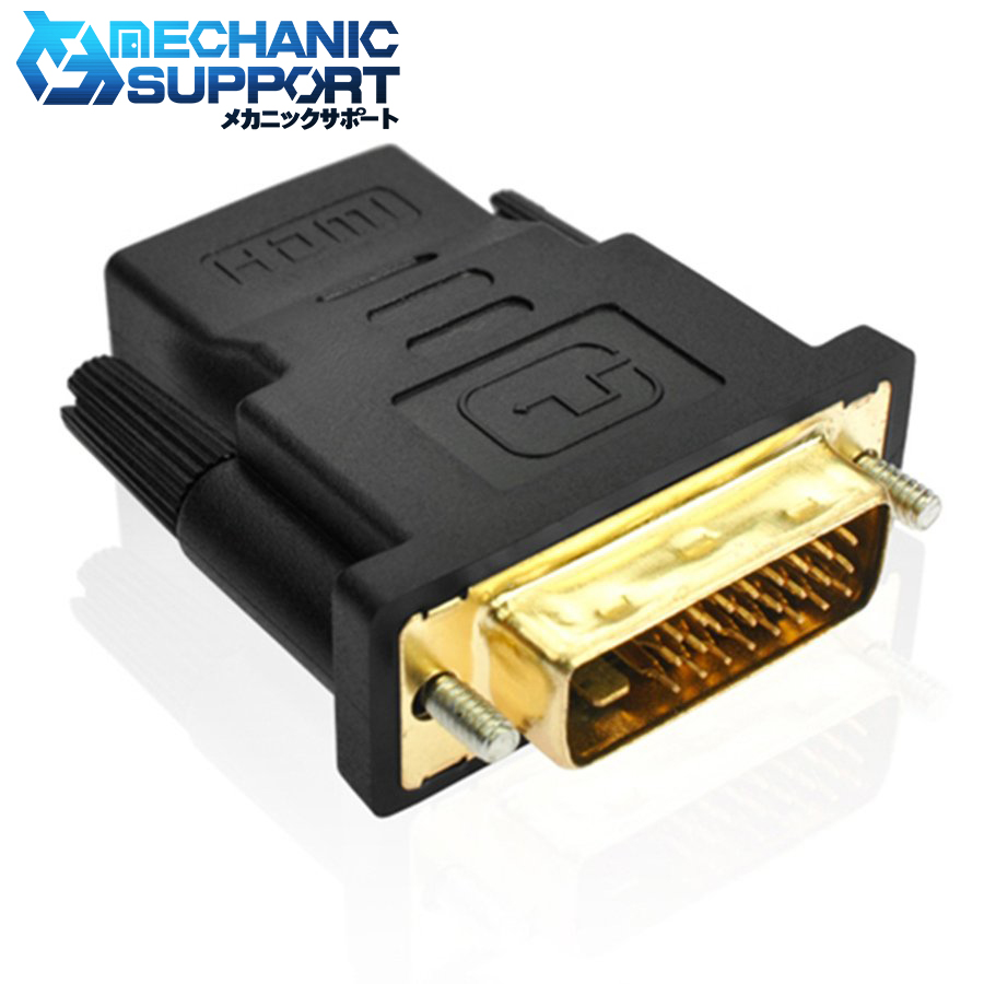 HDMI DVI 変換アダプタ オス-メス DVI-D 24+1 双方向伝送 1080P 金メッキ (DVI-D 24+1) HDMIメス-DVI 24ピンオス 変換 ・HDMIメス-DVI 24ピンオス変換・コネクター部分を伝送信号が劣化しにくい24金メッキ処理・本体長さは40mmの小型・固定ネジは4mmの長め・RoHS対応・HDMI DVI 変換:HDMI端子を持つパソコン等とDVI端子を持つ液晶モニター等の接続を可能にして、大画面でハイビジョンの動画やゲーム等を簡単に映られます。ホームシアター、会議室、教室等の場合で活躍しています。・双方向伝送:HDMI to DVI、DVI to HDMI信号を双方向伝送可能する為、お手元のDVI 端子が搭載する機器(例えラップトップ/デスクトップ)からHDMI 端子が搭載するAV受信機、HDTV 、ディスプレイ等への信号伝送も実現できます。またDVI-I(24 +1)とDVI-D(24+5)コネクター搭載の設備に適用です。・対応機種:PC、新型PS4Pro、PS4スリム、PS3、WiiU、Xbox One、Xbox360、Chromecast、ディアプレーヤー、HDDレコーダー等様々なHDMI接続機器をディスプレイ、プロジェクター、HDTV等に対応します。