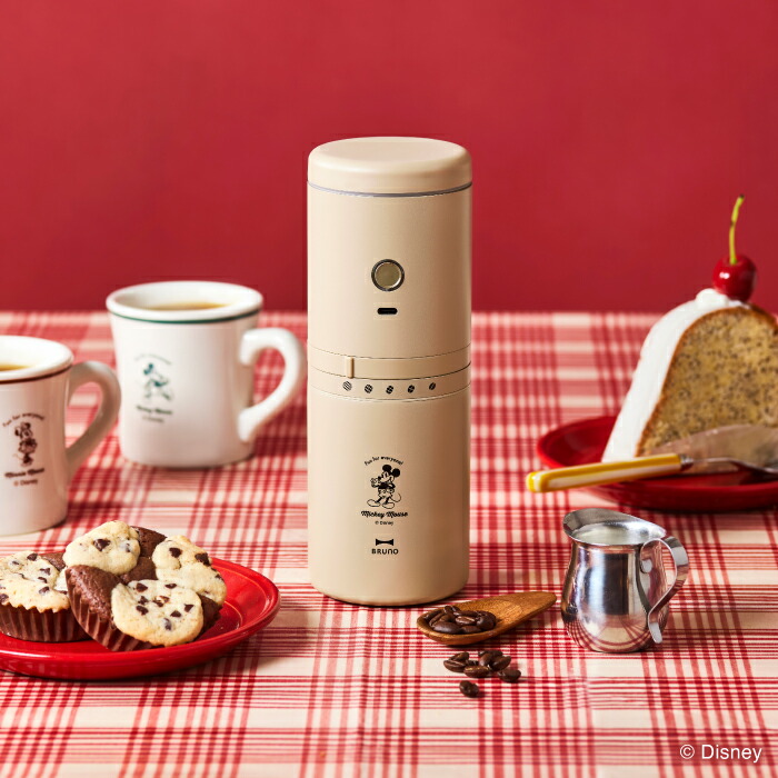 楽しいキッチンタイムを提供するBRUNOから、ディズニーとのコラボレーションで誕生した「パーソナル電動ミルコーヒーメーカー」は、毎日のコーヒータイムを特別なものに変えてくれます。この一台で、コーヒー豆の挽きからドリップまでが手軽に楽しめます。クラシックなアメリカンダイナー風のデザインにミッキーマウスのデザインが加わり、キッチンにアートピースのような存在感を放ちます。USB充電式でどこでも使えるため、お家でもオフィスでも、またアウトドアでも挽きたてのコーヒーを楽しむことが可能です。コーン式ミルで5段階の粒度調節ができ、ステンレスメッシュフィルターのドリッパーはペーパーレスで環境にも優しい。さらに、持ち運びに便利なコンパクトサイズで、500mLのペットボトルと同じくらいのサイズ感で、どんな場所でも活躍します。モーター部以外はすべて丸洗い可能で、毎日のお手入れも簡単です。