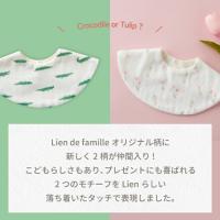 リヤンドファミーユから新たに登場したワニとチューリップデザインのかわいいスタイ。シンプルでまぁるい形状のこのスタイは、どんなお洋服にも合わせやすい色合いで、赤ちゃんの写真撮影にも映えます。Wガーゼとパイル生地の二層構造がよだれや食べこぼしをしっかりと吸収し、スナップボタンでの着脱も簡単。チューリップは「思いやり」、ワニは「強さと勇気」の象徴としてデザインされており、特別な意味も込められています。赤ちゃんへのプレゼントや出産祝いにもぴったりなアイテムです。洗濯機で洗えるので、いつでも清潔に保てます。このスタイは、赤ちゃんの快適さとお母さんの使いやすさを考えてデザインされており、日常使いはもちろん、特別な日のギフトにも最適です。