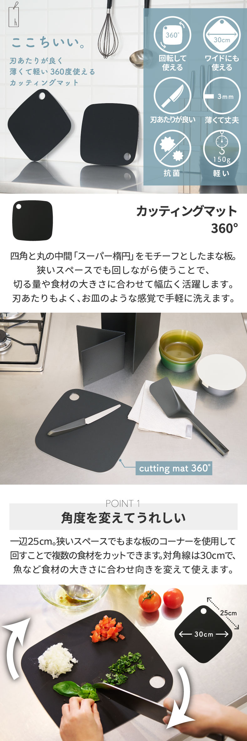 回転させることで隅々まで使える!カタチを活かしたカッティングマットです。