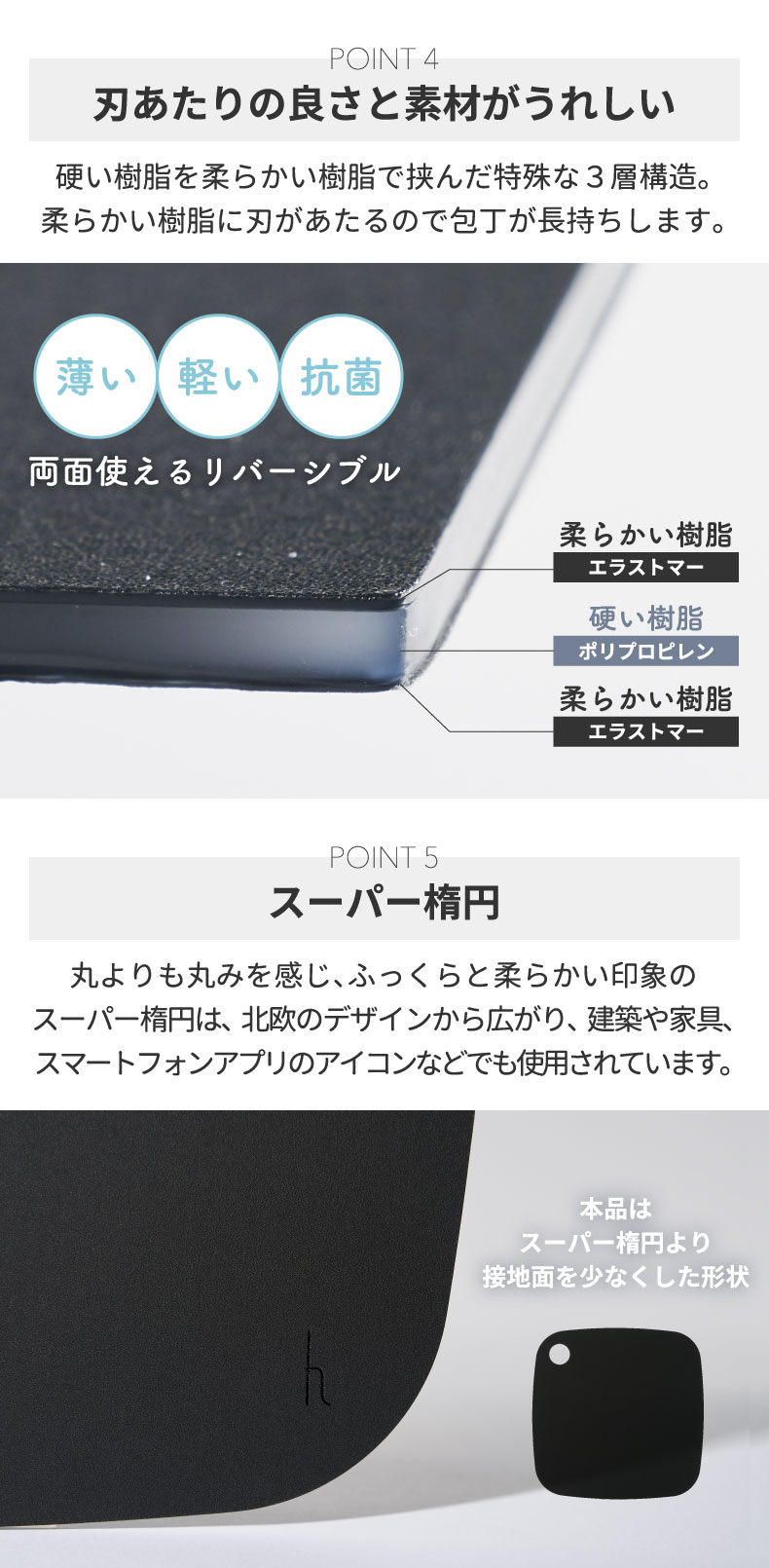 柔らかい樹脂に刃があたるので包丁が長持ちします。裏表どちらも使用可。