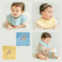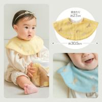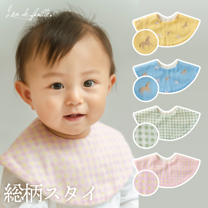 シンプルで可愛らしいまぁるい形の総柄スタイは、Wガーゼとパイル生地の二層仕立てで、赤ちゃんのよだれや食べこぼしをしっかりキャッチ。スナップボタンで簡単に着脱でき、機能性も抜群です。Lien de familleのオリジナル柄はどちらもプレゼントに最適で、おしゃれで可愛い赤ちゃん用アイテムです。