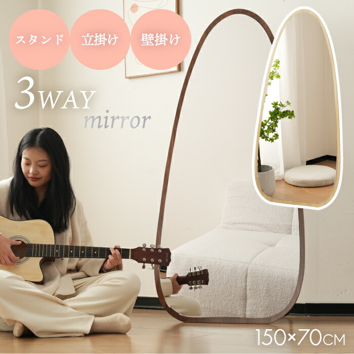 A. スタンド・壁掛け・立てかけの3WAYで使える全身ミラーです。お部屋や用途に合わせて設置方法を選べます。