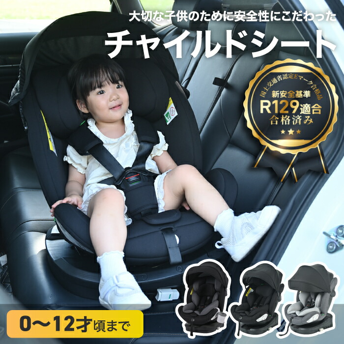 ・ 国土交通省公認の最新安全基準R129に合格済み。従来のR44規格より厳しい基準で設計され、お子様をより安全に守ります。