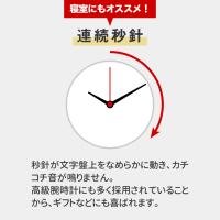 | 注意事項 | ※ご覧の環境により、色の見え方が異なる場合がございます。 ※仕様、デザインは商品改良のため予告なく変更する場合がございます。 ※電池は別売です。 ※連続秒針タイプも全く音がしないわけではありません。コチコチと音は聞こえませんが、実際には歯車の動く“ジーっ”という音が聞こえ、人によっては気になるという方もいらっしゃいます。その際は音がしないデジタル時計のご使用をおススメします。 |