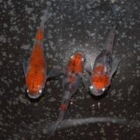 【選別漏れ】になりますので完全な朱赤三色錦メダカの特徴は出ていません。薄い三色や紅白、赤ブチや楊貴妃系、白系メダカのような個体が大半を占めます。