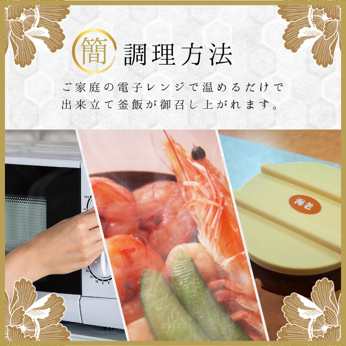 海老釜飯:海老(バナメイ、ブラックタイガー)