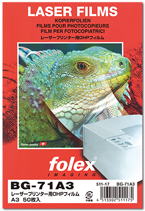 レーザープリンター用 OHPフィルム A3/50枚入【厚さ0.100mm】(BG-71A3)