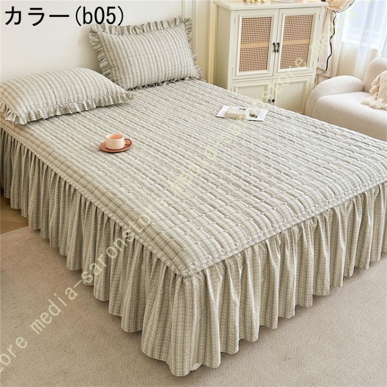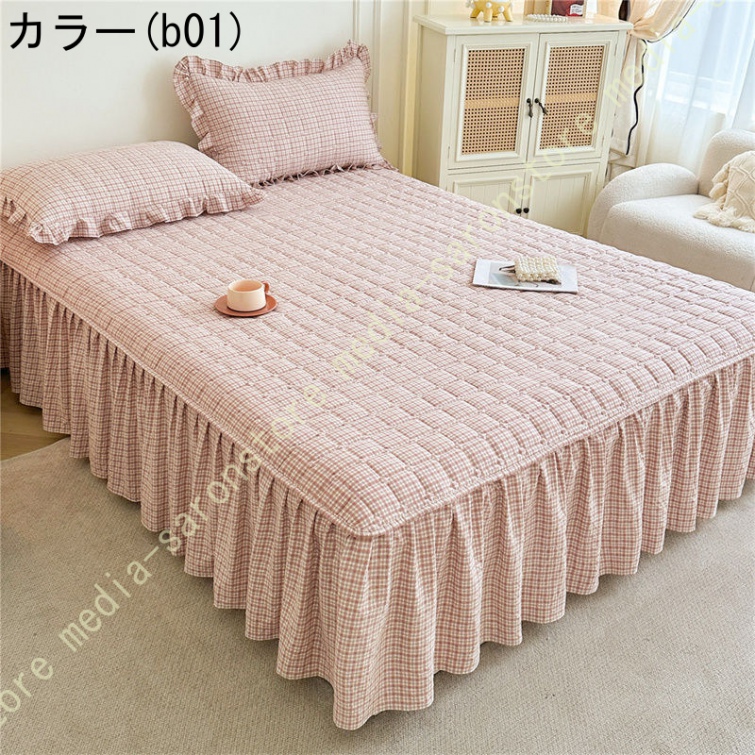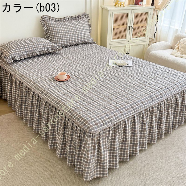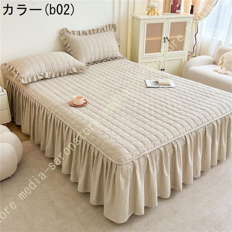 無地 ベッドスカート ベッドシーツ マットレス敷きカバー 肌に優しい ベッドスプレッド フリル 寝具カバー 敷きシーツ ダブル キング 高通気性 耐久性