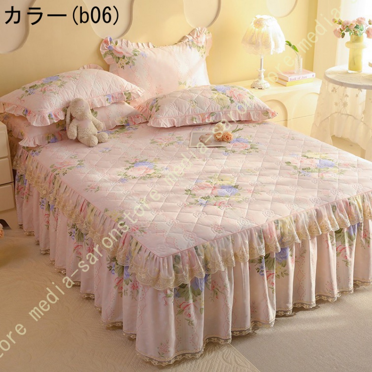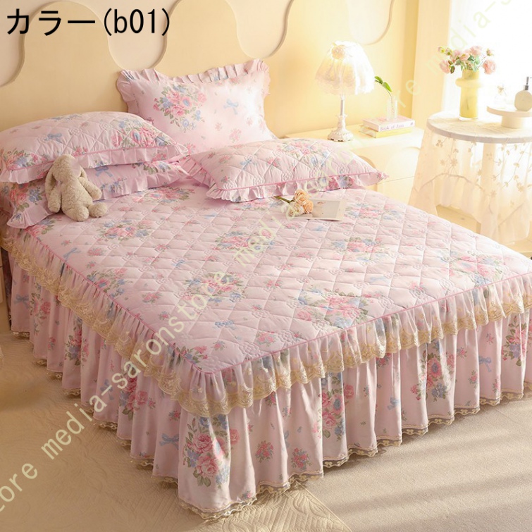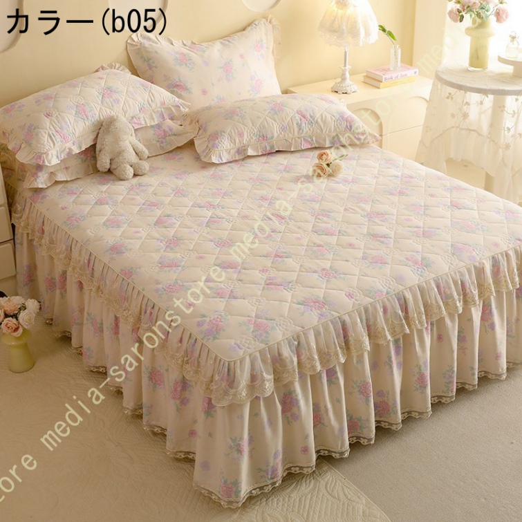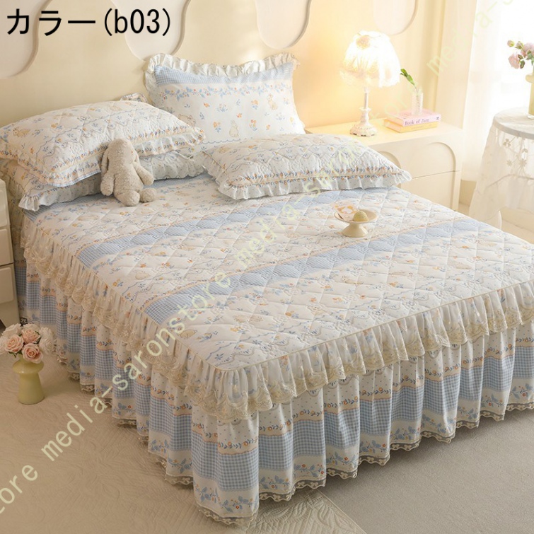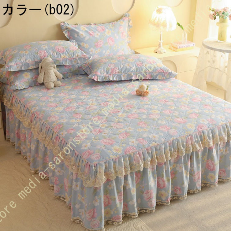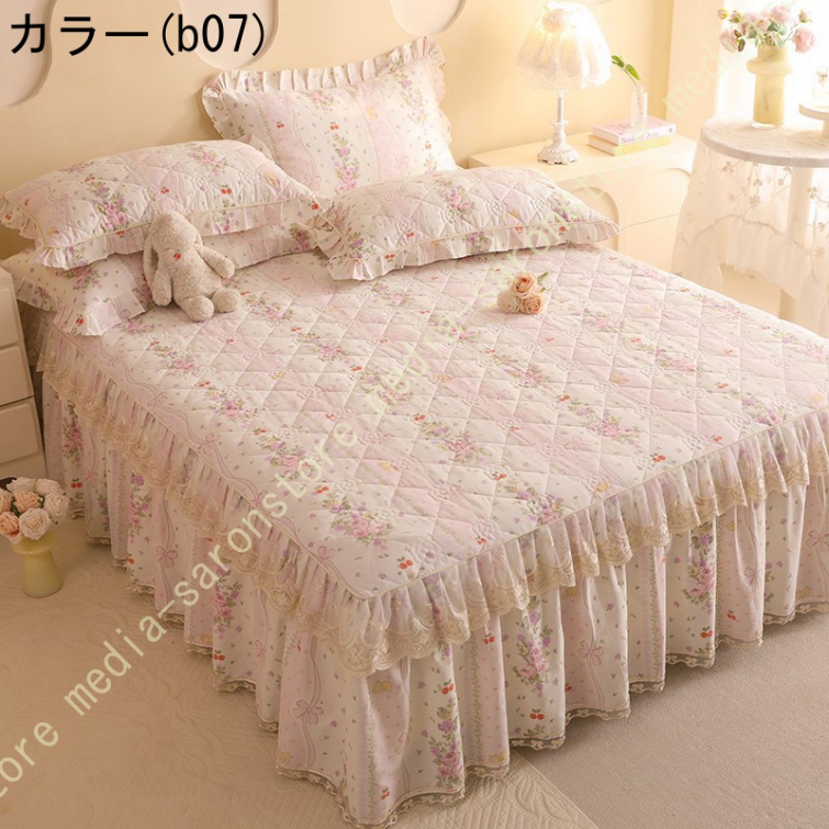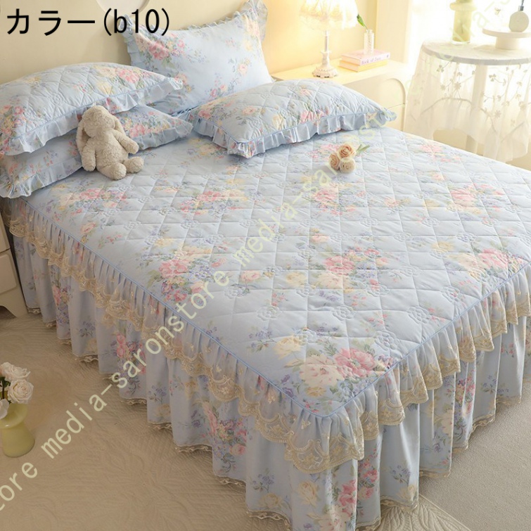 ベッドスカート 枕カバー 寝具カバーセット 3点セット インテリア 上品 フリル レース姫系 ベッドカバー セミダブル シングル ダブル キング ベッドスプレッド