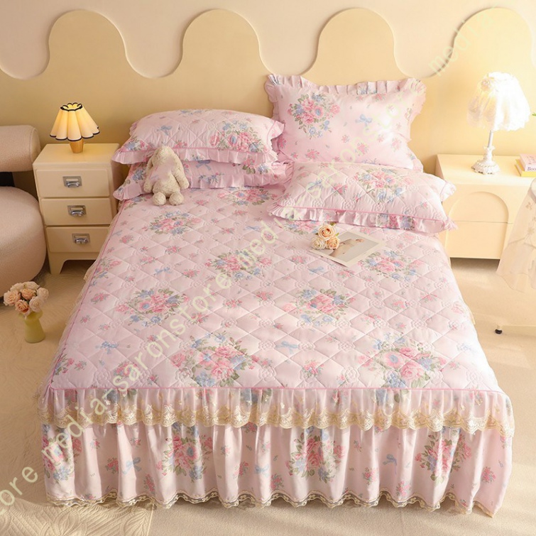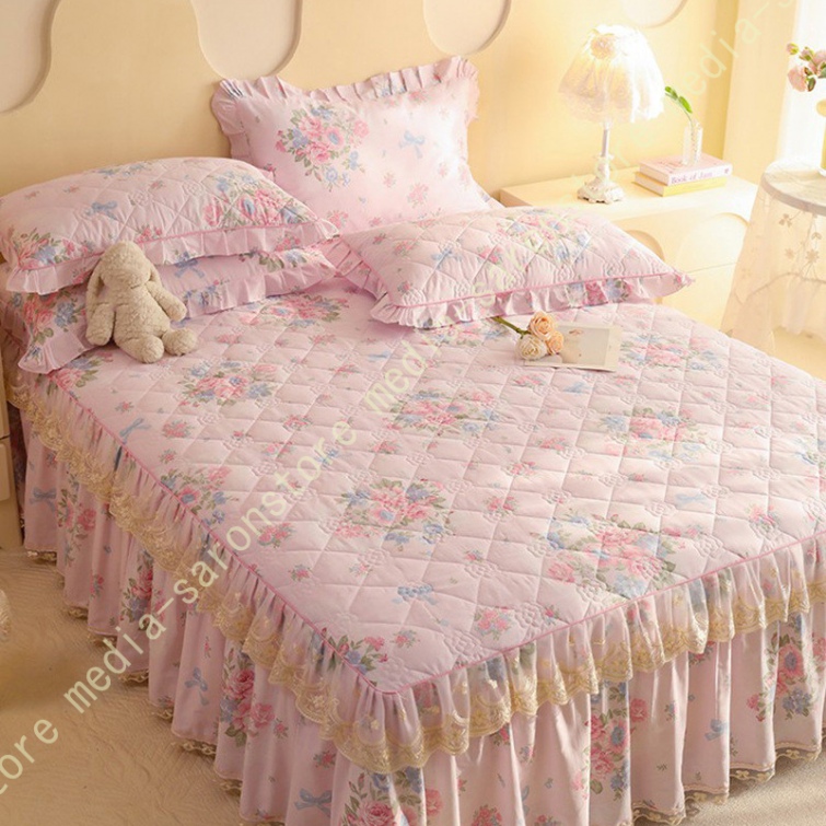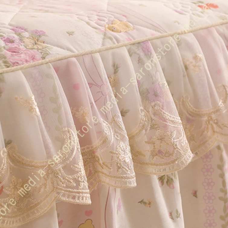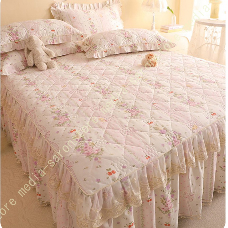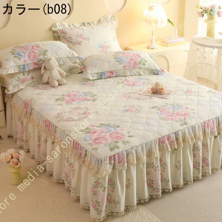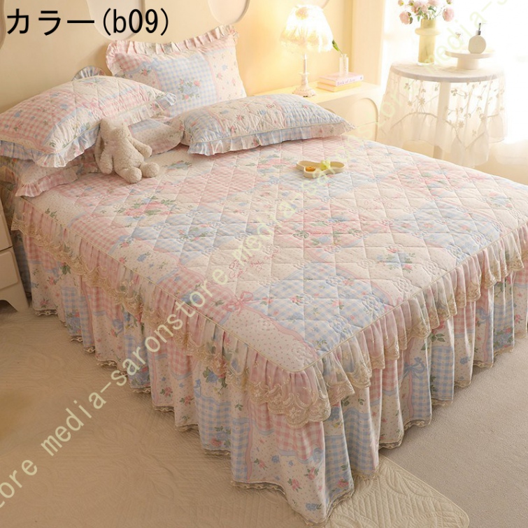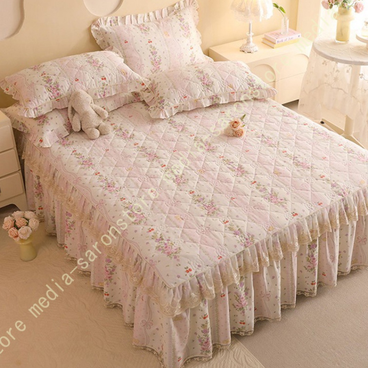 ベッドスカート 枕カバー 寝具カバーセット 3点セット インテリア 上品 フリル レース姫系 ベッドカバー セミダブル シングル ダブル キング ベッドスプレッド