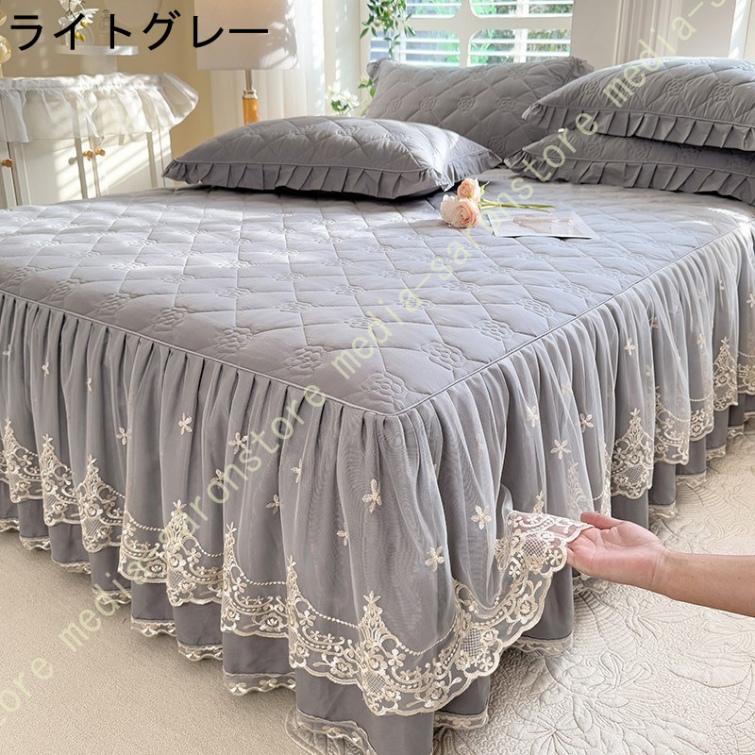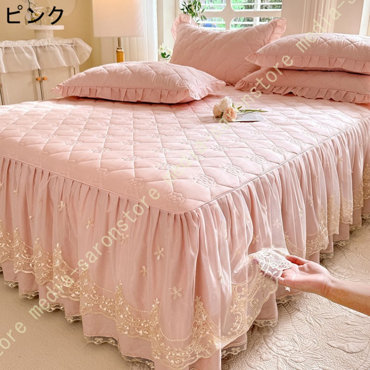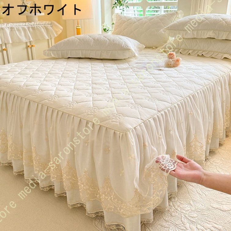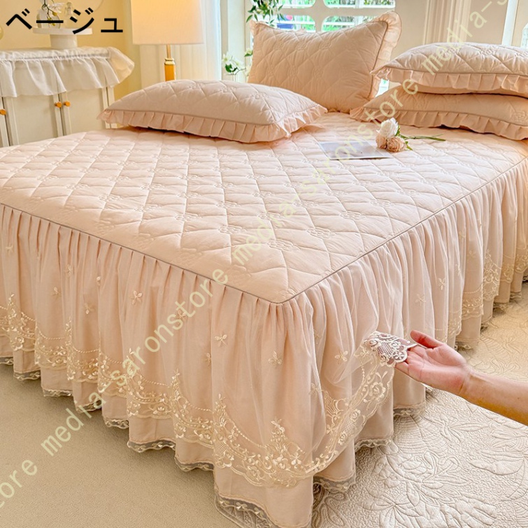 ベッドスカート シングル セミダブル ベッドカバー フリル 敷シーツ 中綿 無地 丸洗い 耐久性 やわらか 寝具カバー かわいい 北欧風 ベッド シーツエレガント