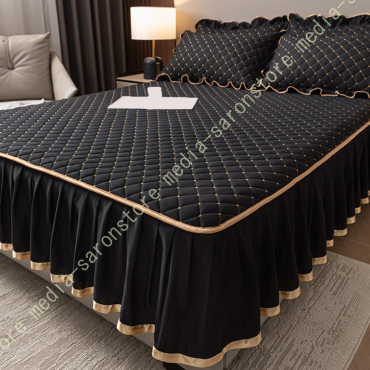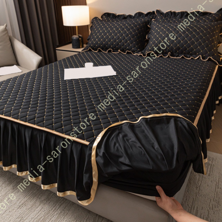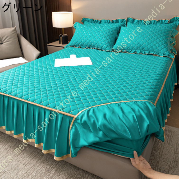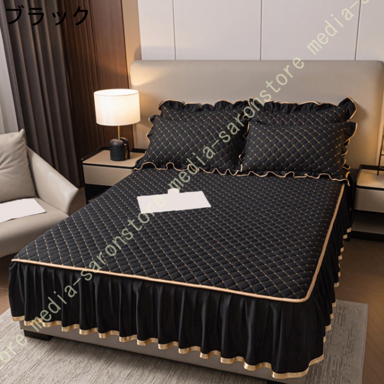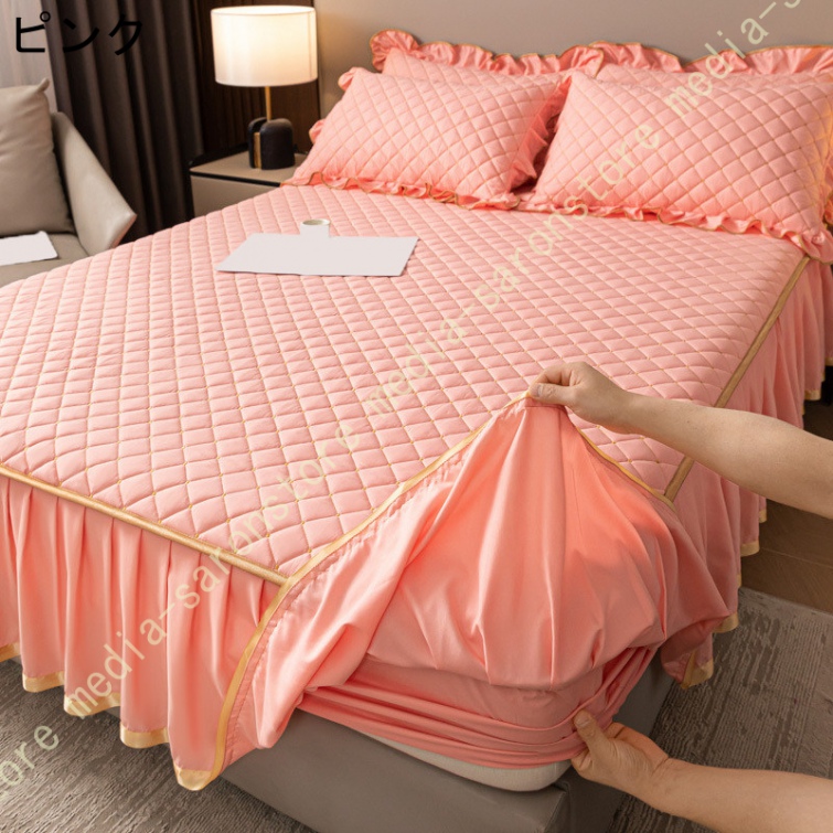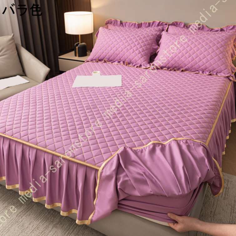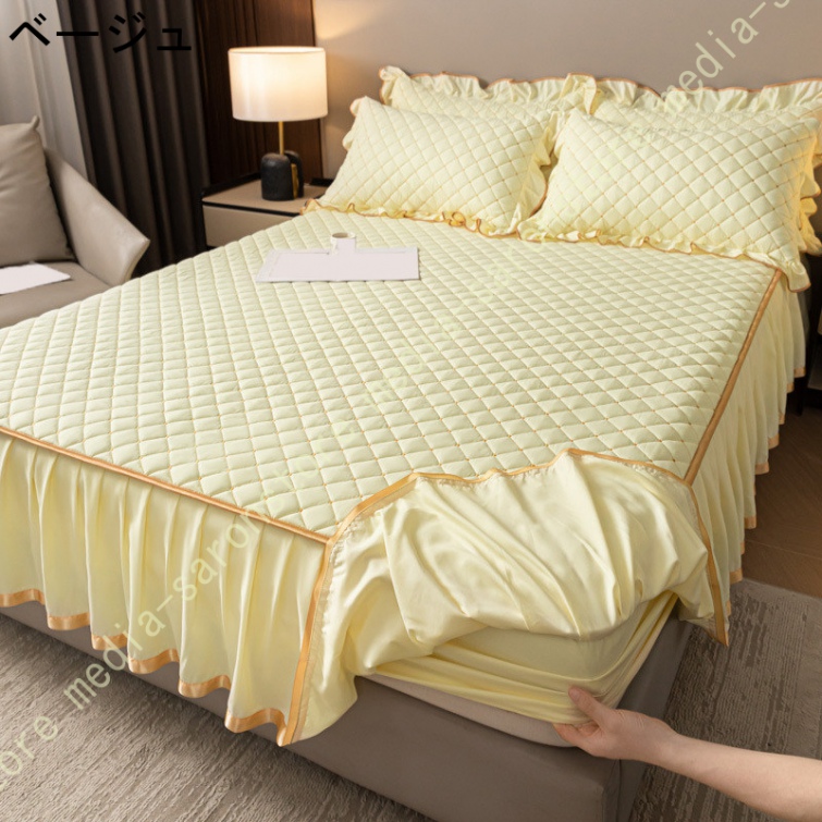 ベッドスカート 中綿 セミダブル セット 洗いざらし 柔らかい レース付き ダブル セミダブル キング 敷きシーツ 優雅 きれいめ エレガント 上品 フリル