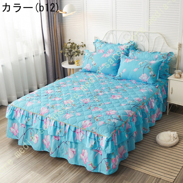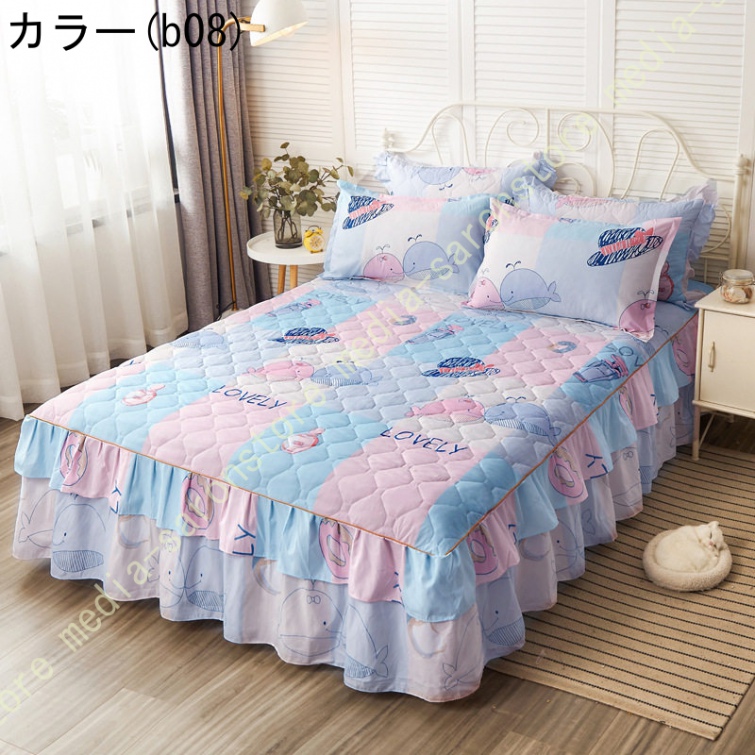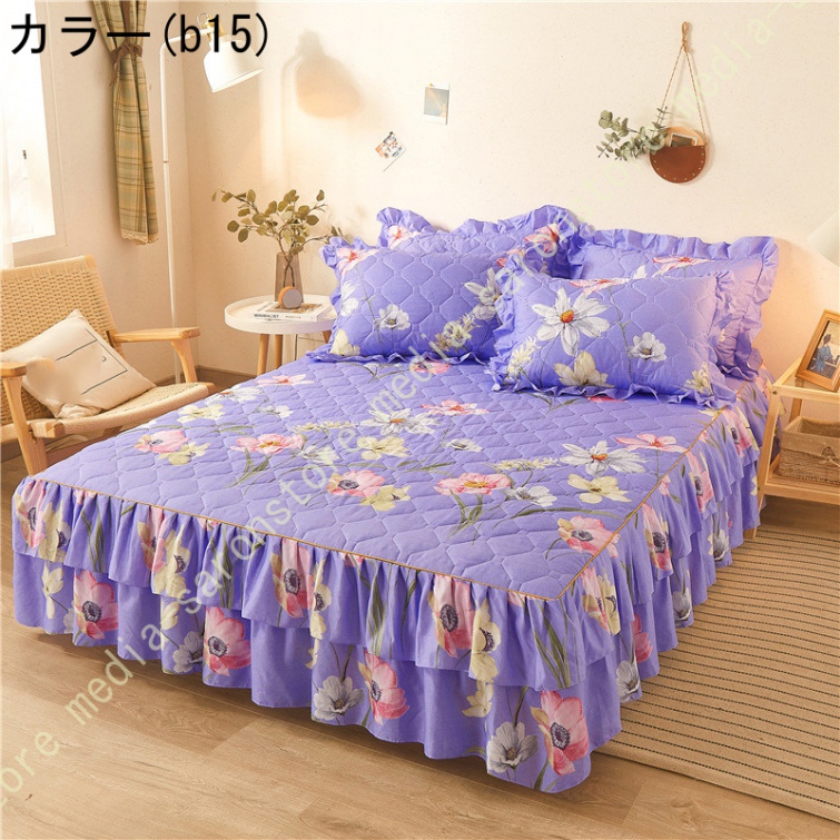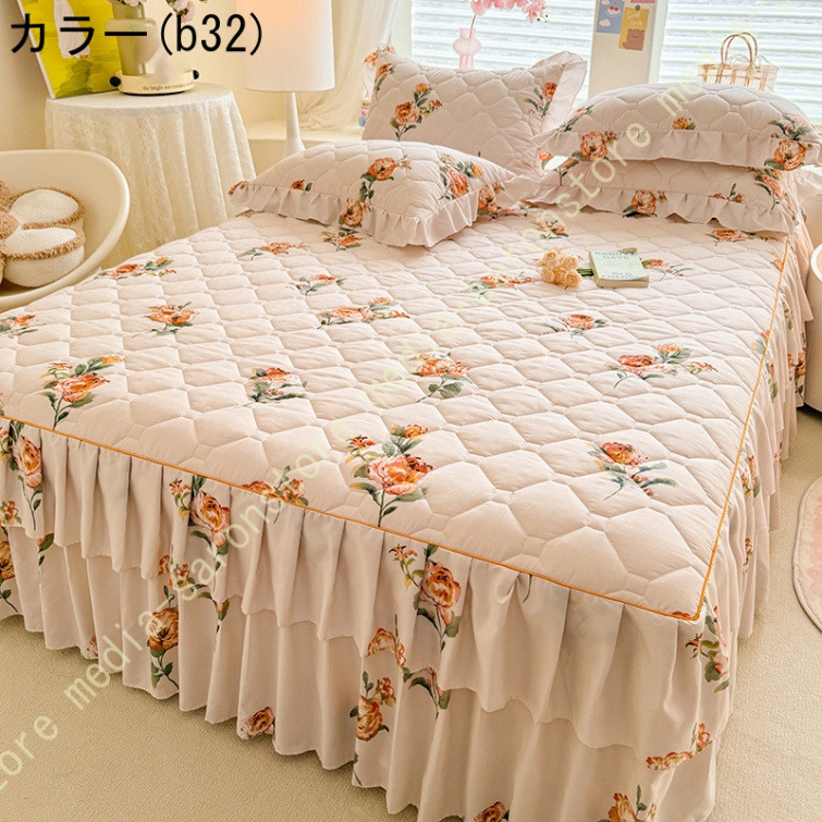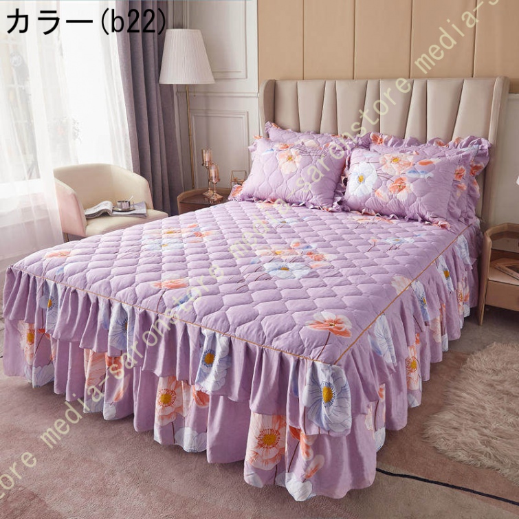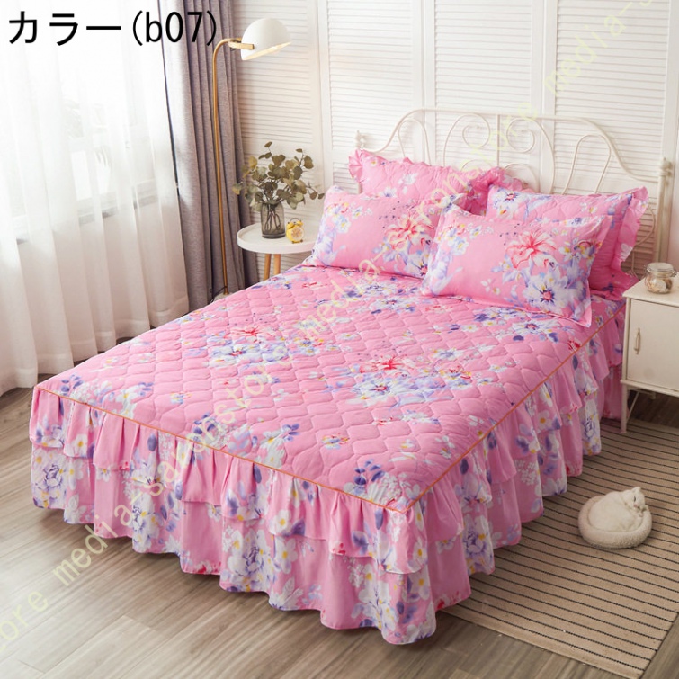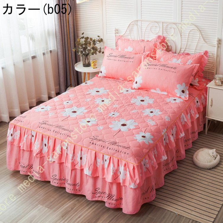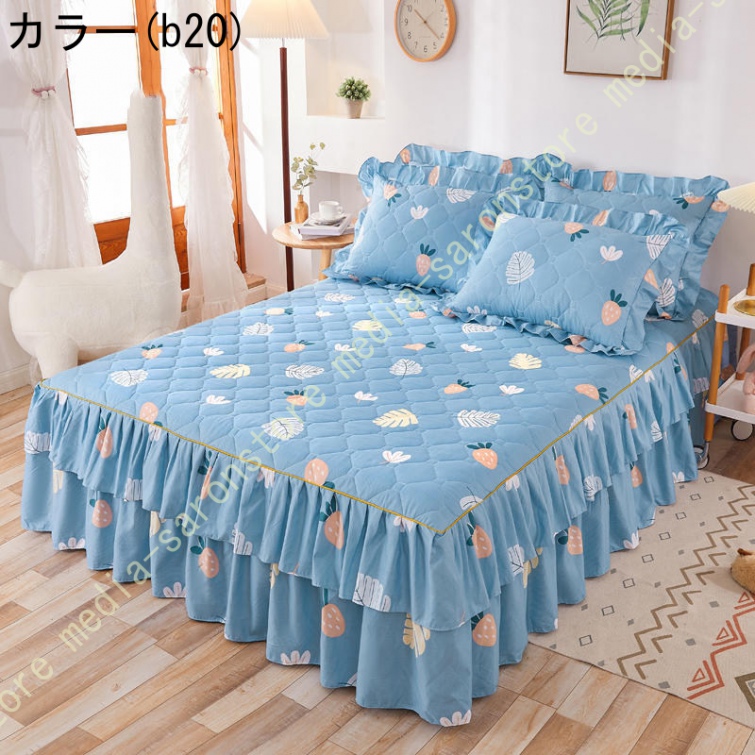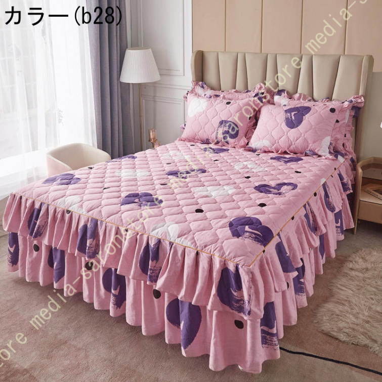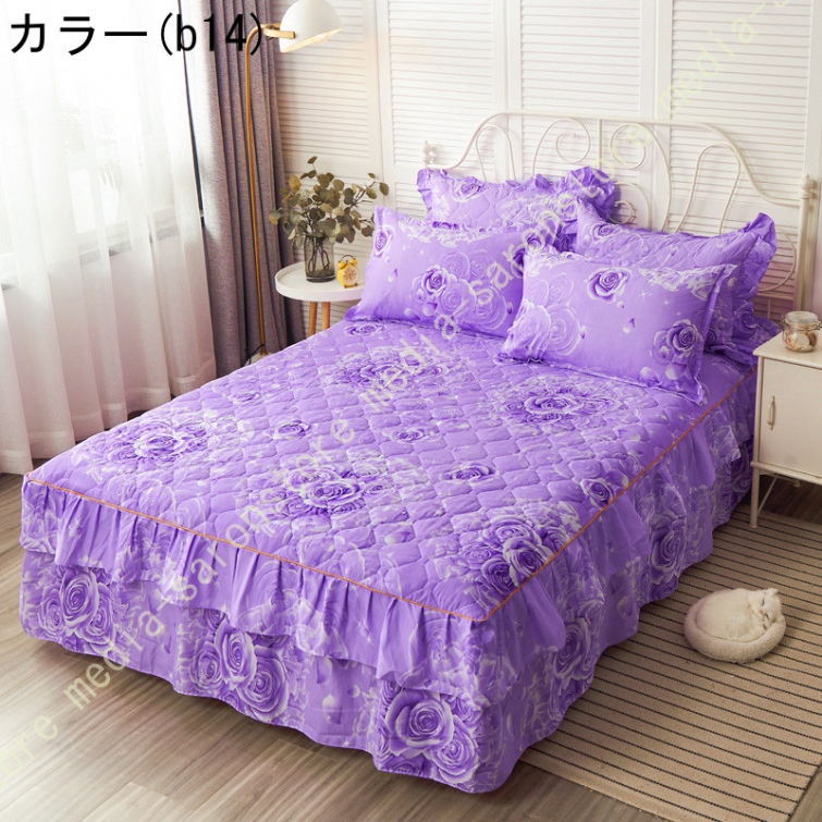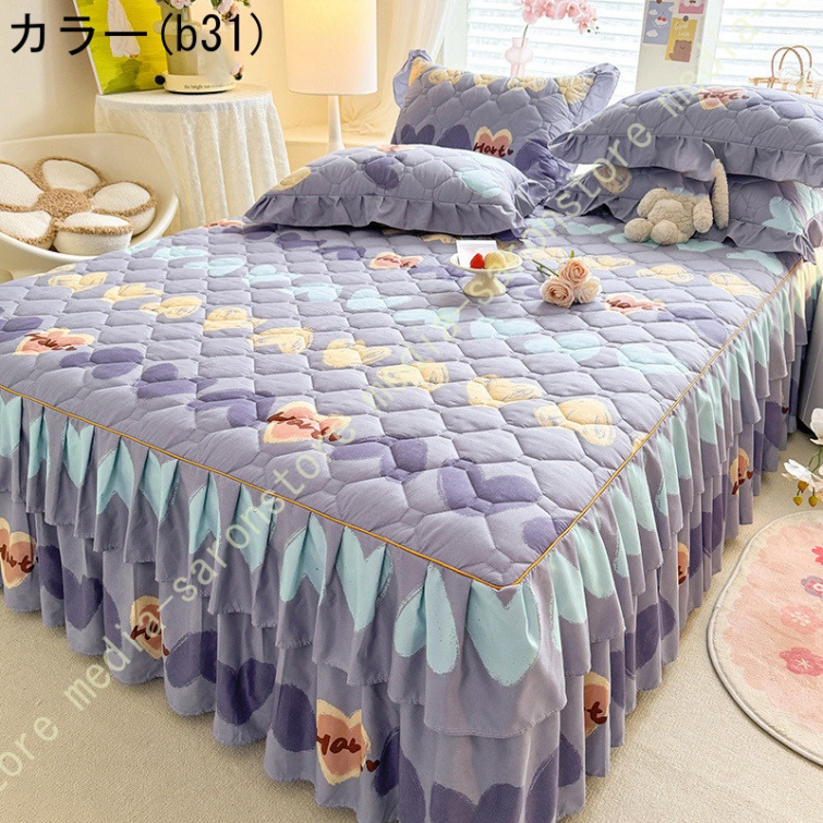 ベッドスカート マットレスカバー 可愛い お姫様風 セミダブル 柔らかい 厚手 中綿 ベッドカバー レース フリル付き ベッド用品 寝室コーデ 寝具カバー