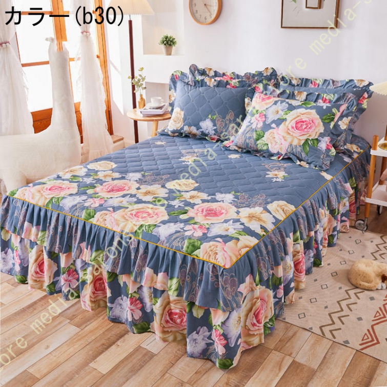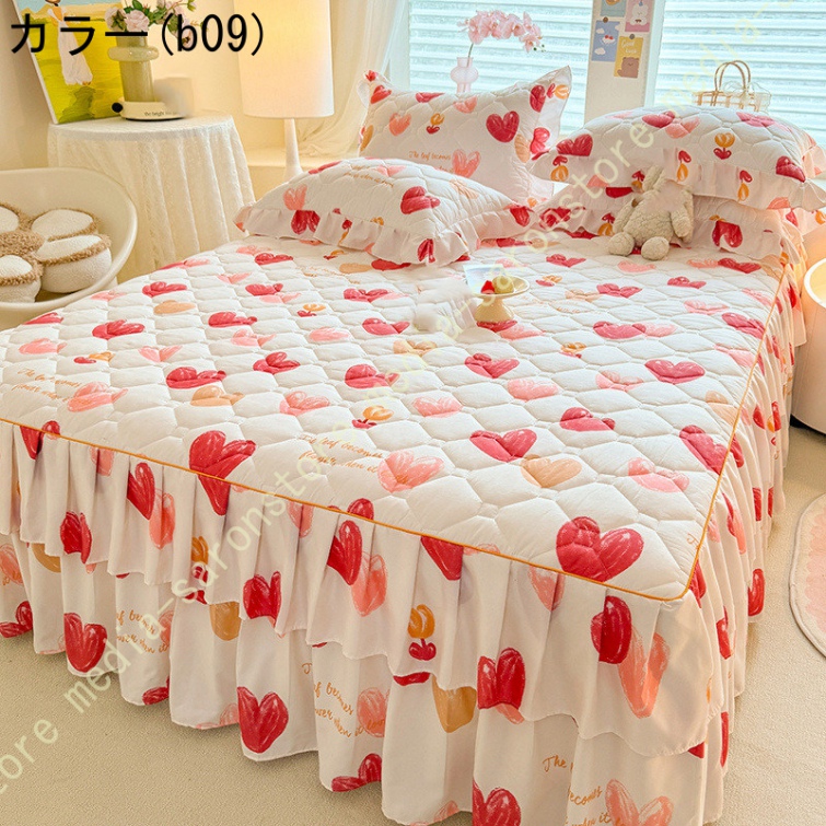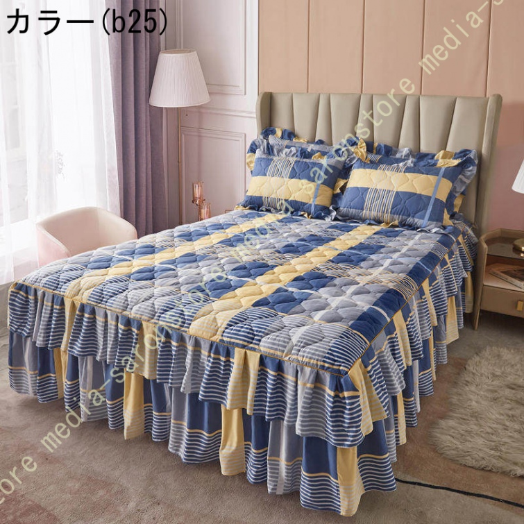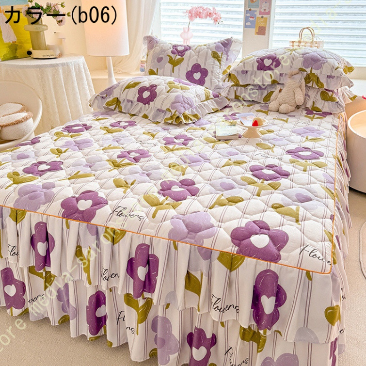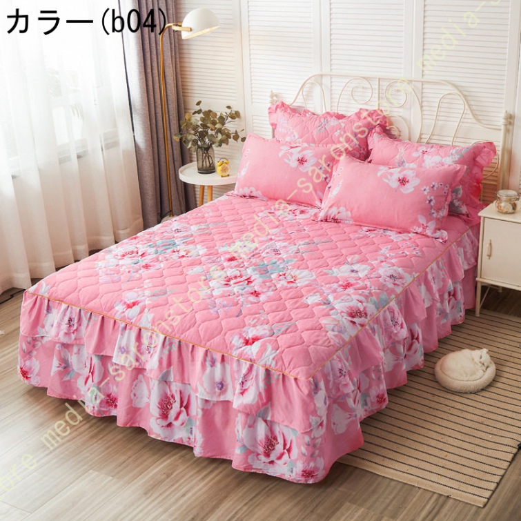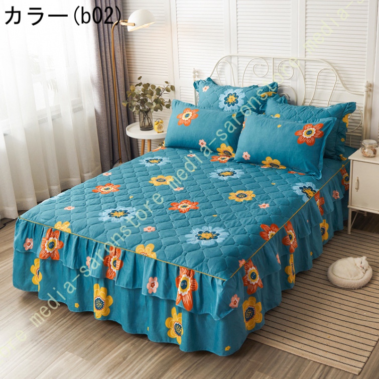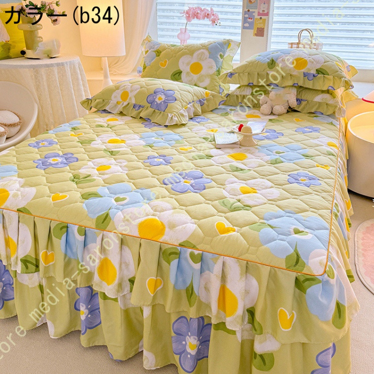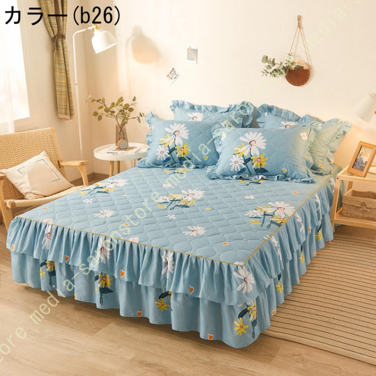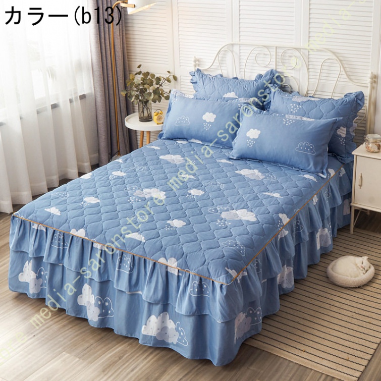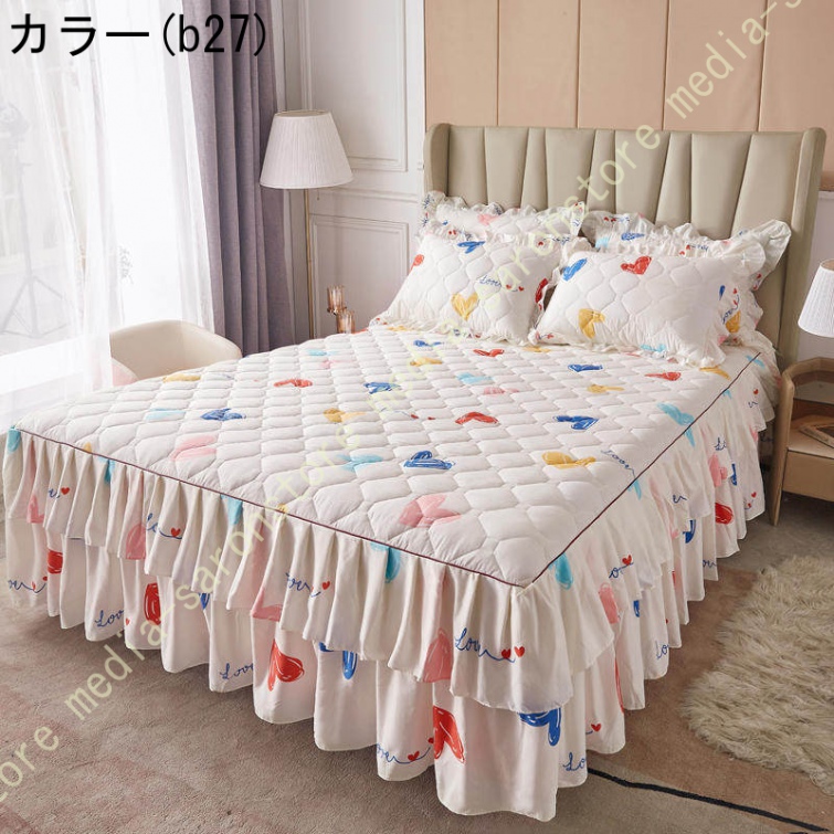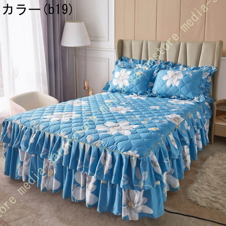 ベッドスカート マットレスカバー 可愛い お姫様風 セミダブル 柔らかい 厚手 中綿 ベッドカバー レース フリル付き ベッド用品 寝室コーデ 寝具カバー