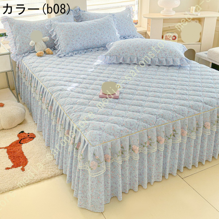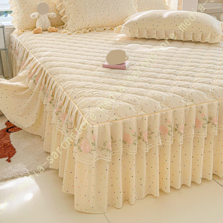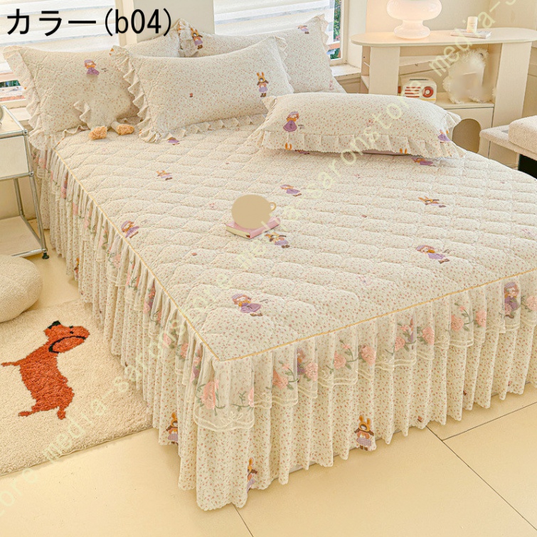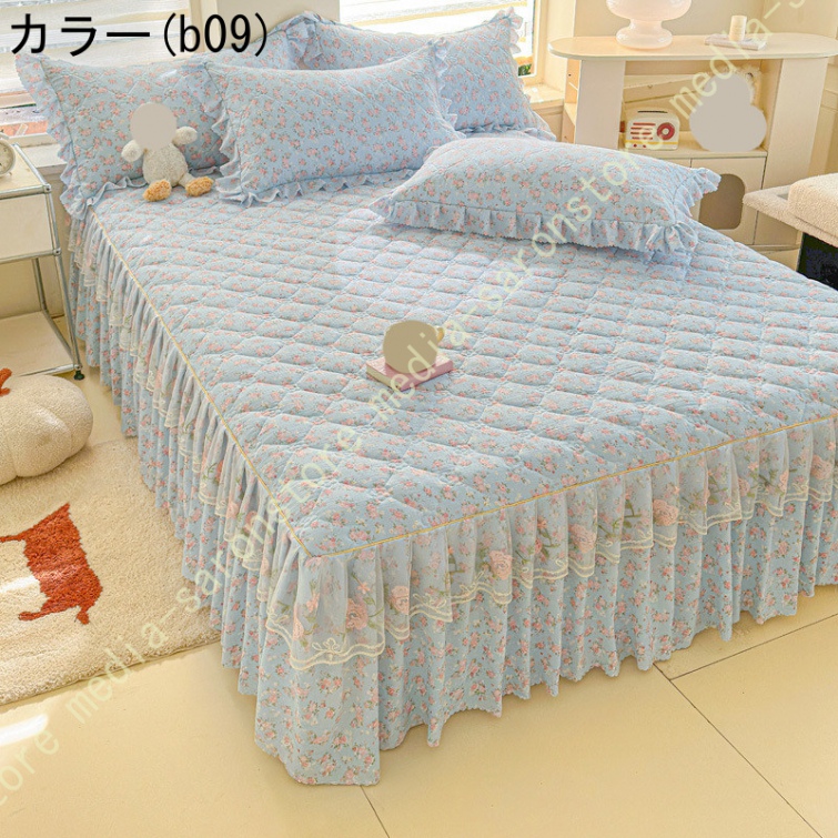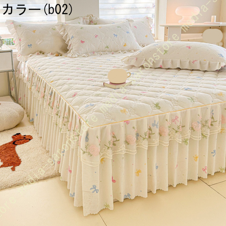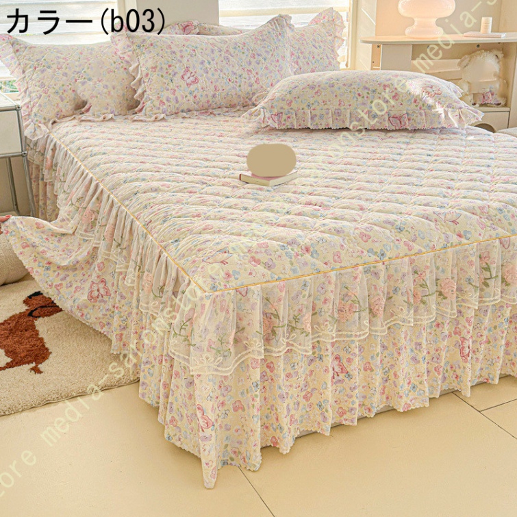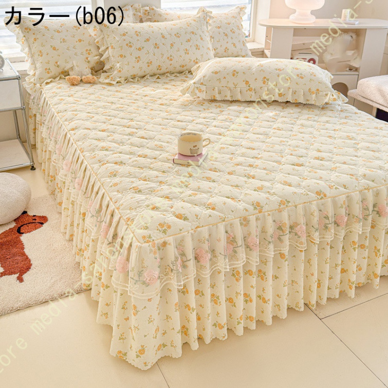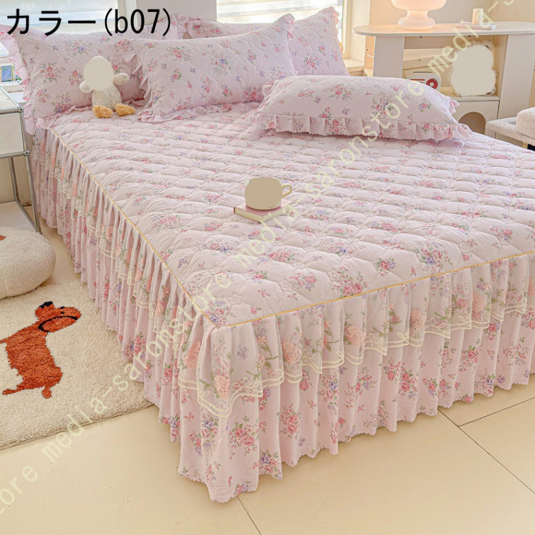 ベッドスカート 中綿ベッドスカート キルティング フリル 姫系 可愛い ベッドカバー セミダブル ダブル ベッドスプレッド 寝室 ホテル 寝具カバー 洗える
