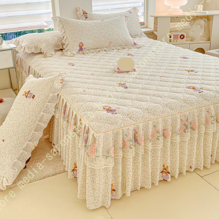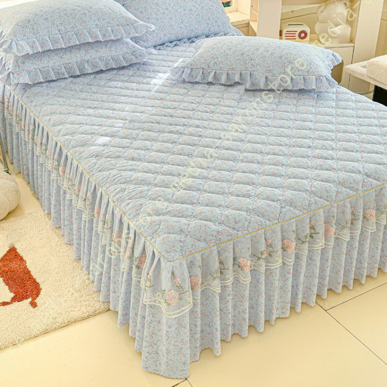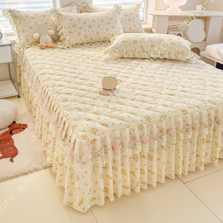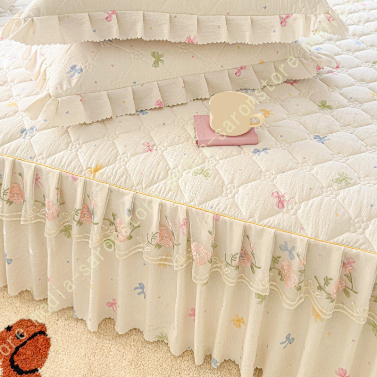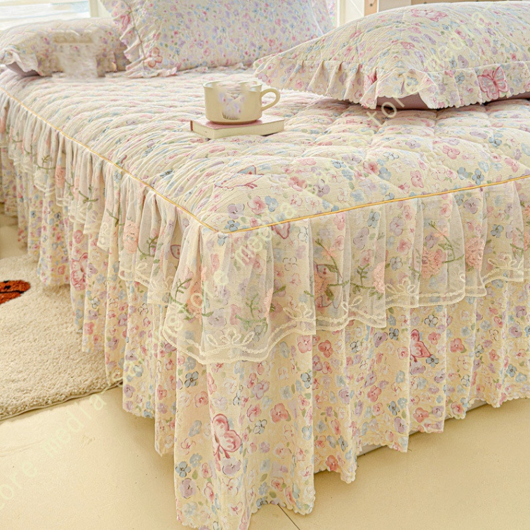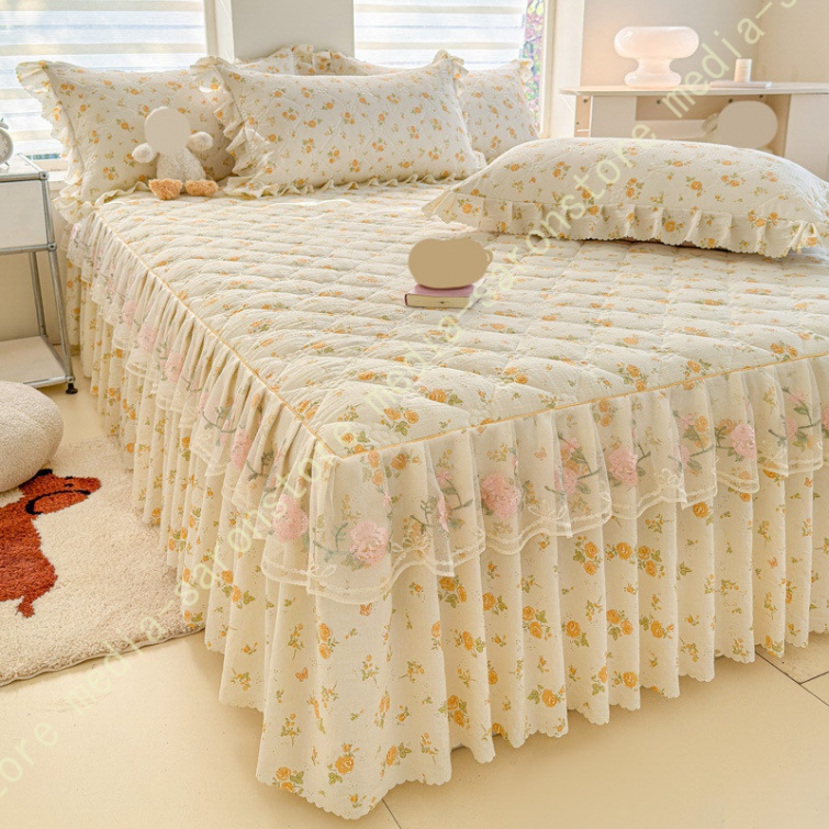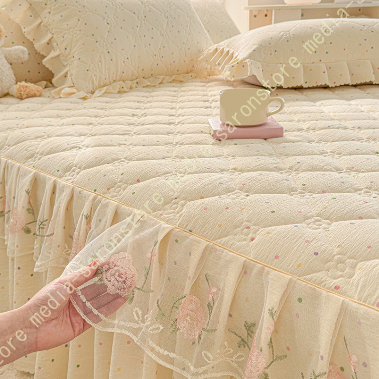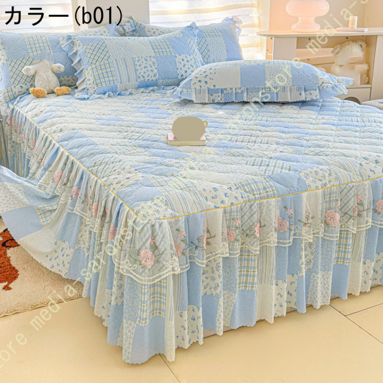 ベッドスカート 中綿ベッドスカート キルティング フリル 姫系 可愛い ベッドカバー セミダブル ダブル ベッドスプレッド 寝室 ホテル 寝具カバー 洗える
