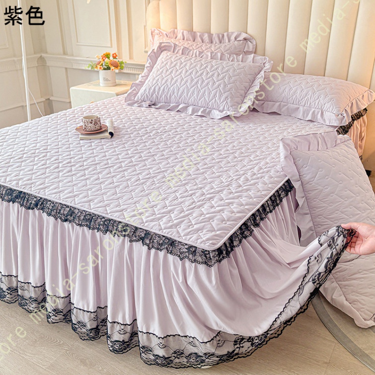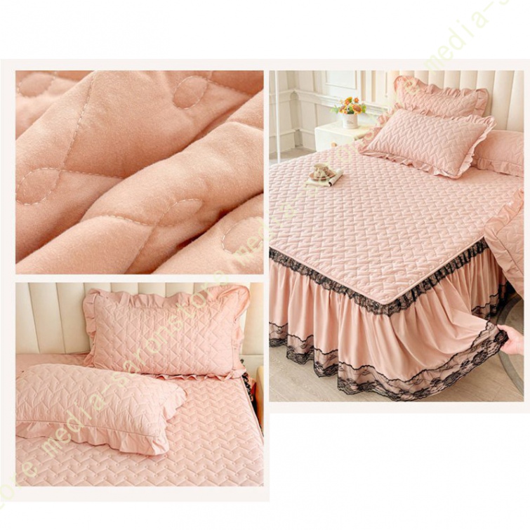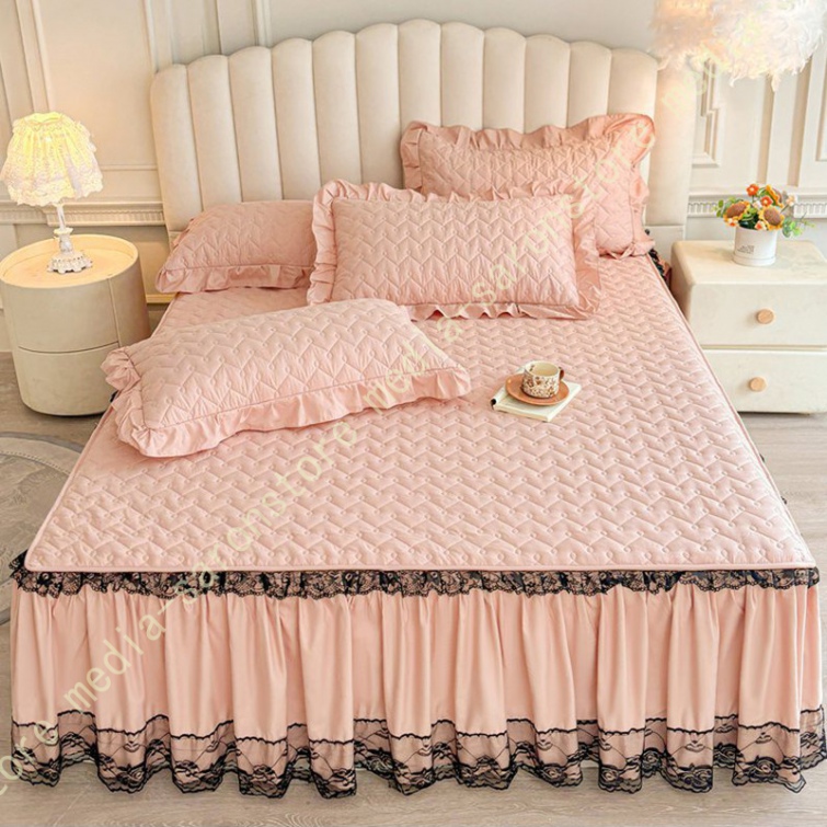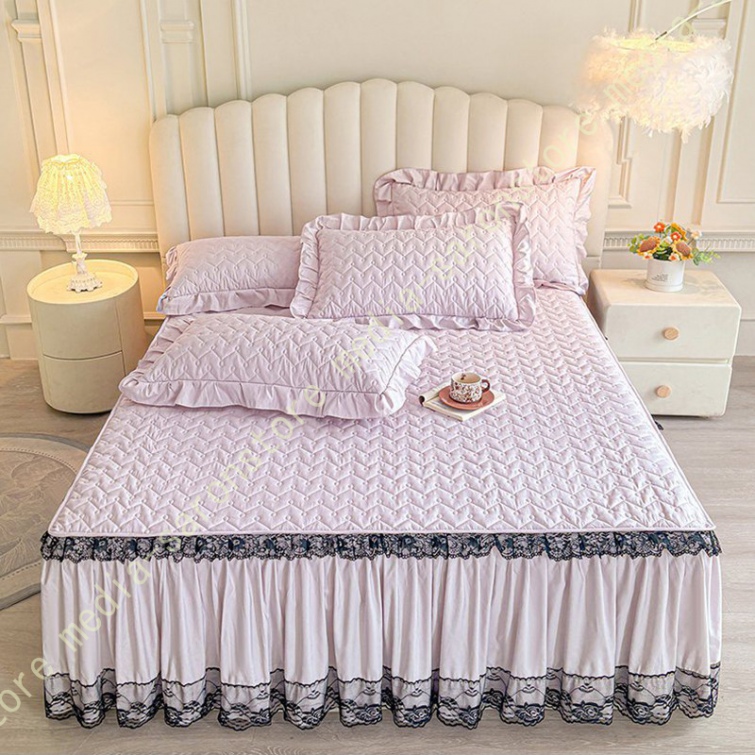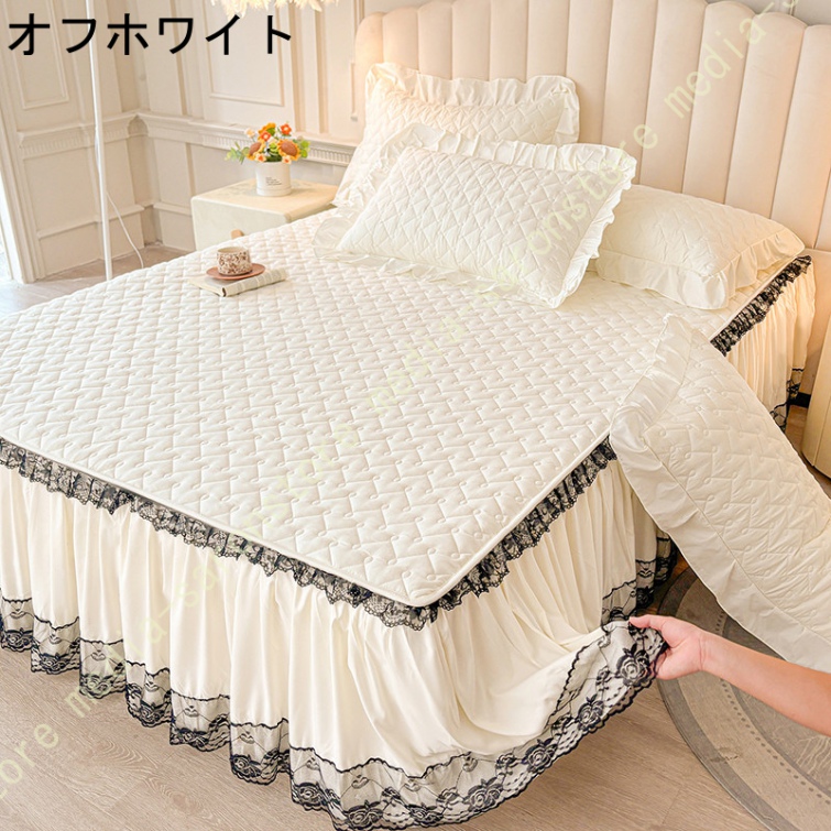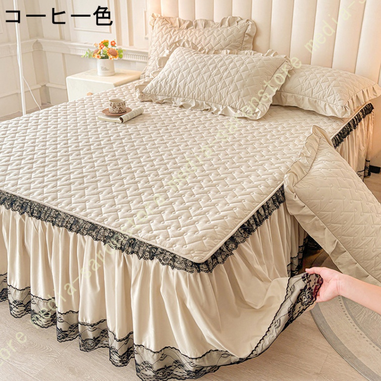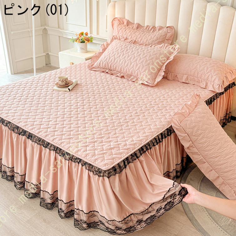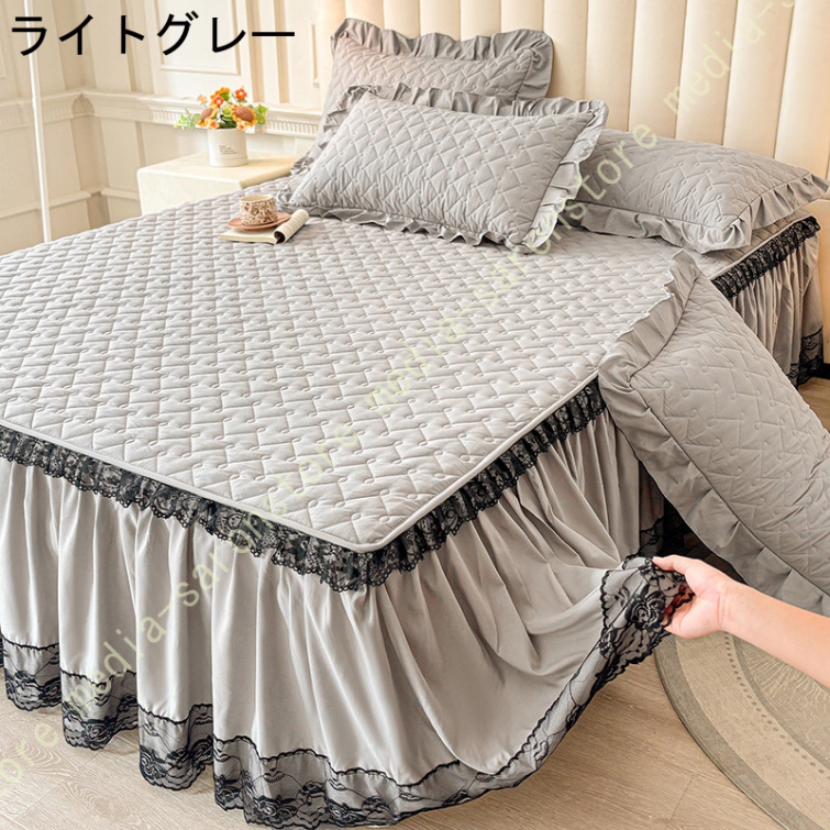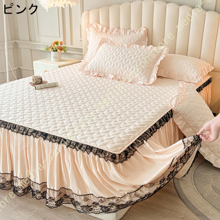 ベッドスカート 枕カバー レース 3点セット 姫インテリア フリル ベッドカバー きれいめ シングル ダブル キング ベッドスプレッド 寝具カバー 洗える
