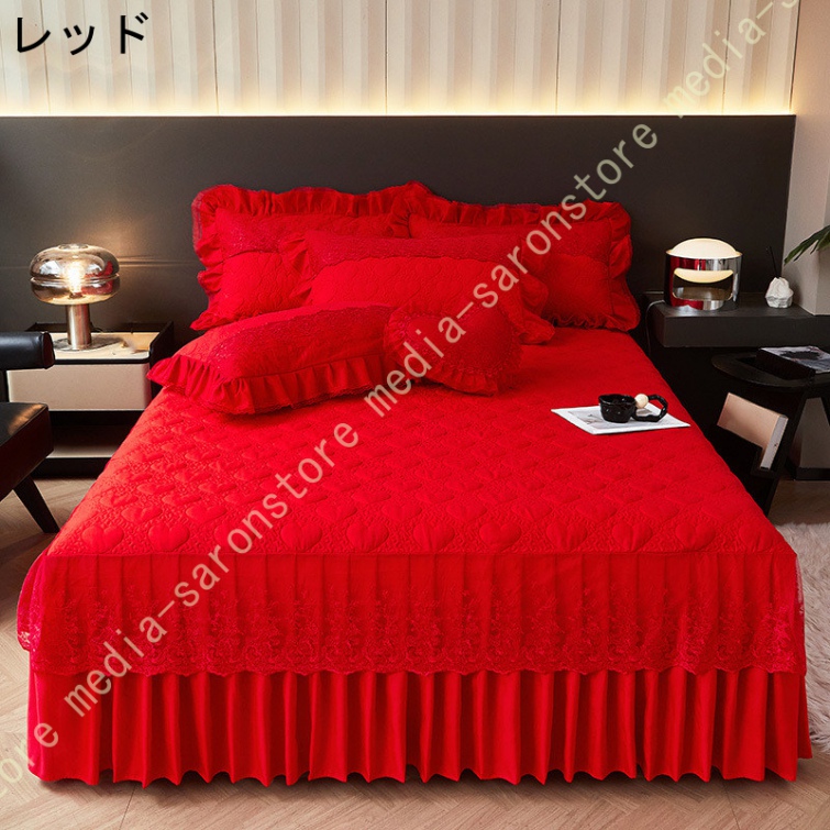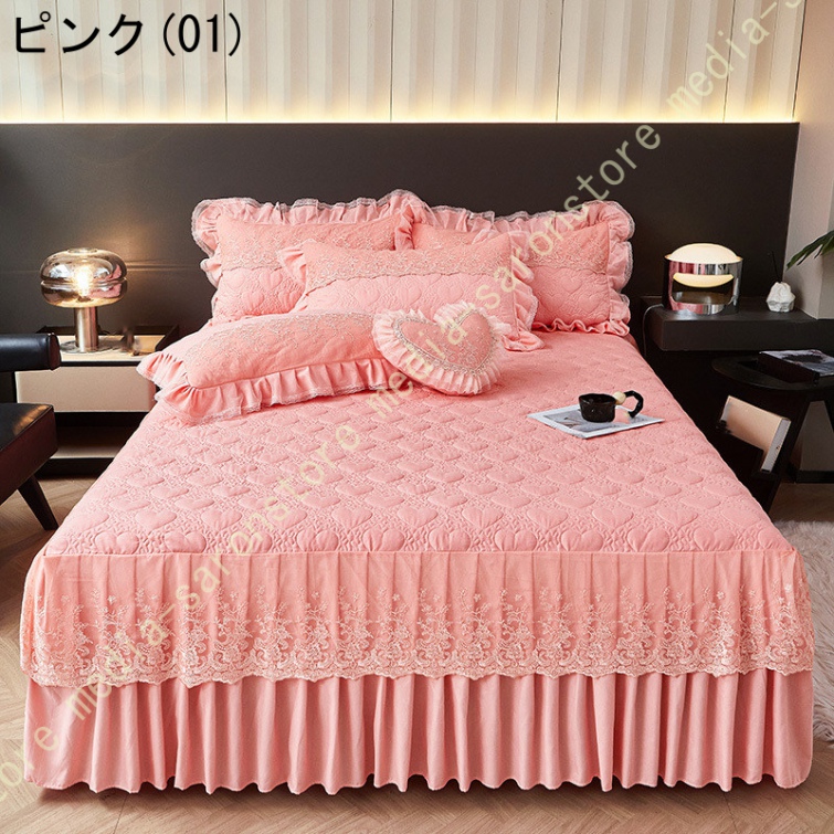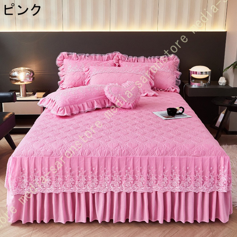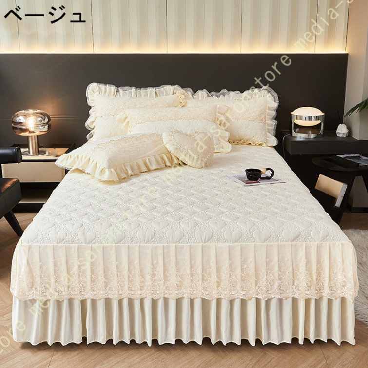 ベッドスカート フリルデザイン 花柄 北欧 贅沢 プリーツ かわいい おしゃれ 取り付け簡単 エレガント ベッド装飾 ベッドカバー マットカバー フリル 姫系