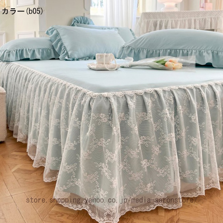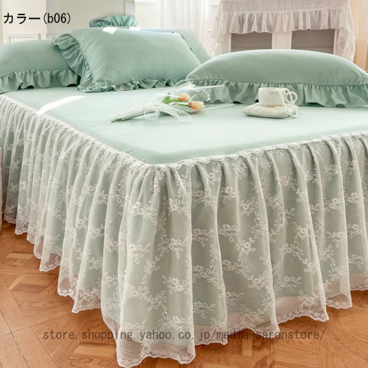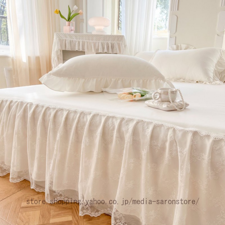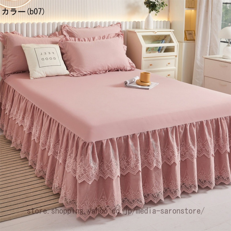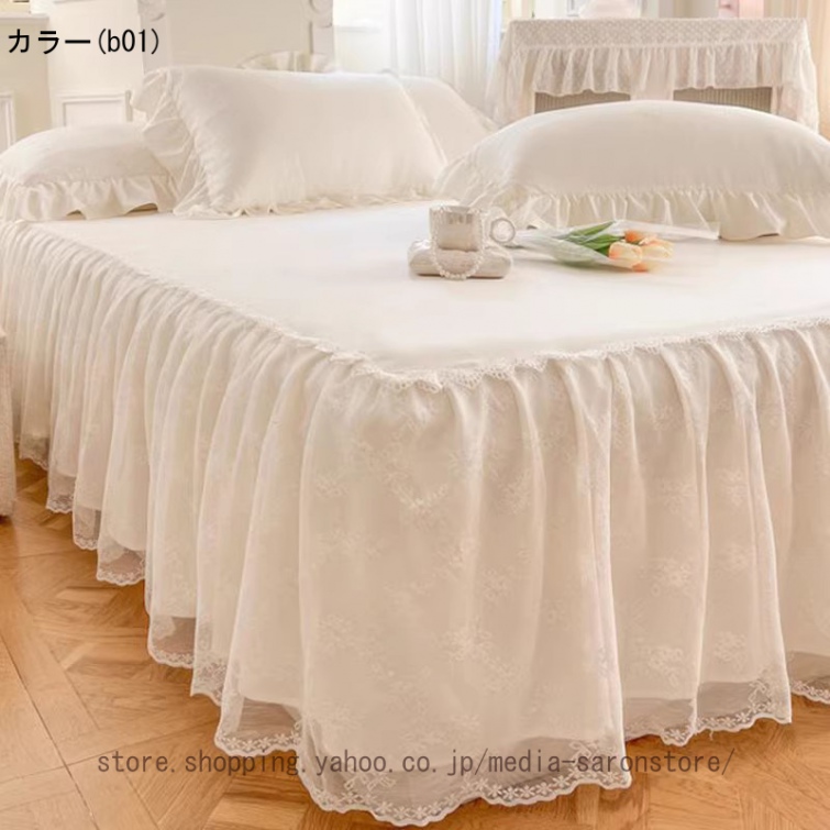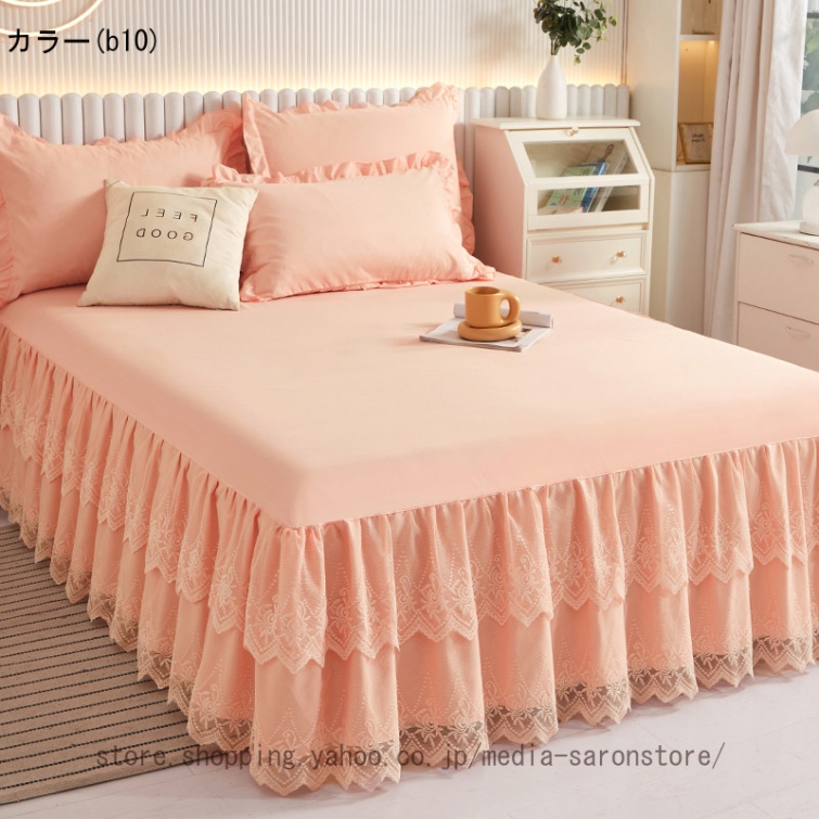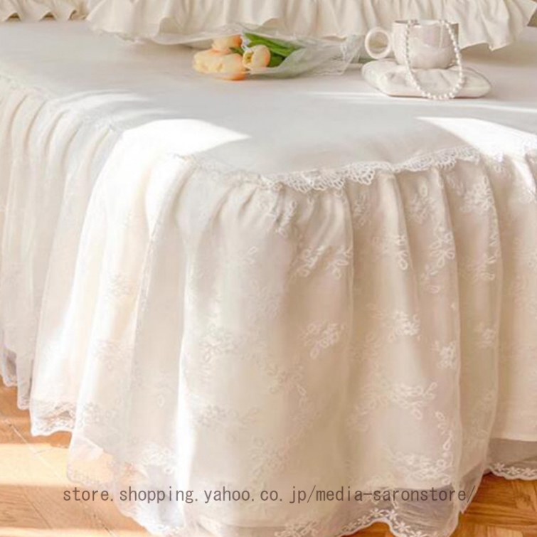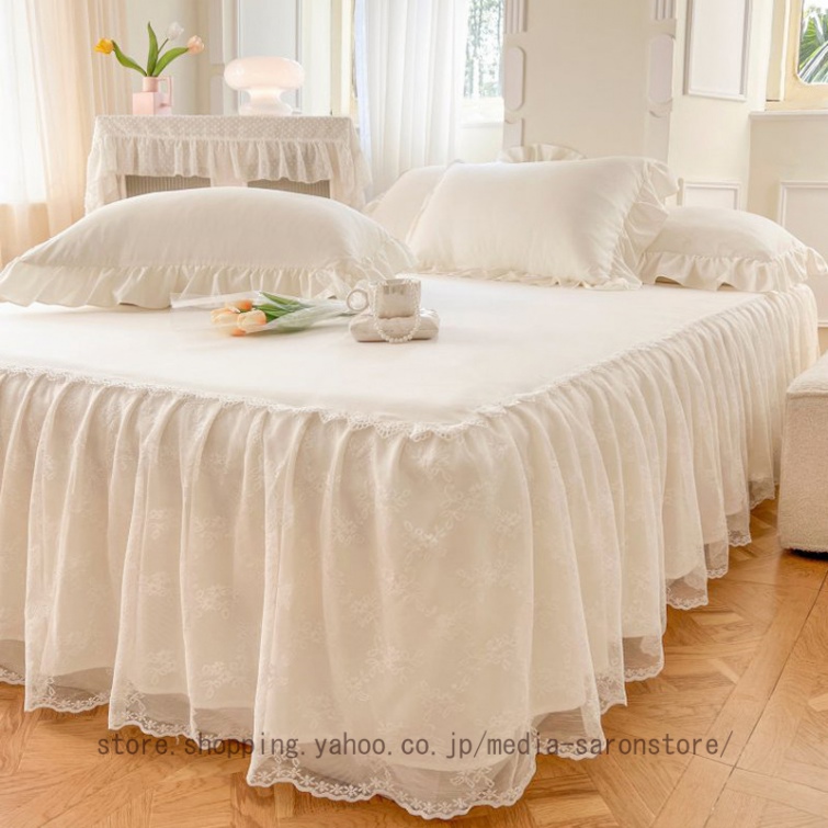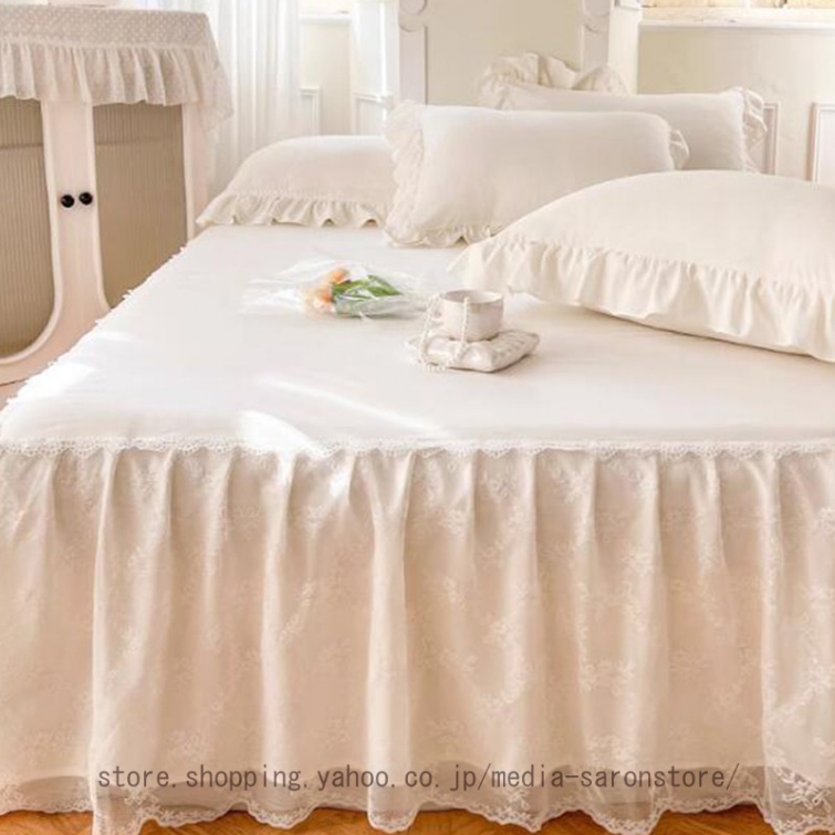 無地 ベッドスカート ベッドシーツ マットレス敷きカバー 肌に優しい ベッドスプレッド フリル レース 寝具カバー 敷きシーツ コットン 高通気性 耐久性