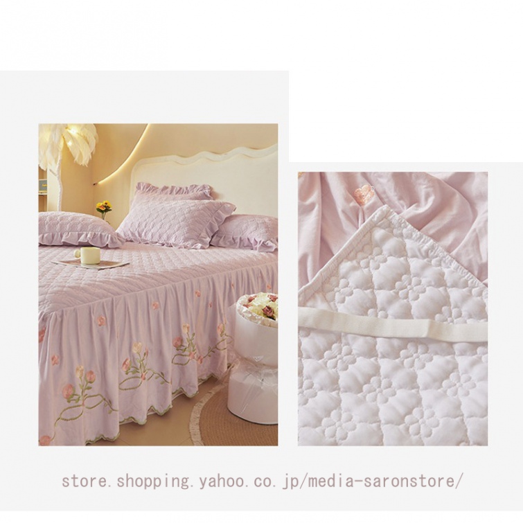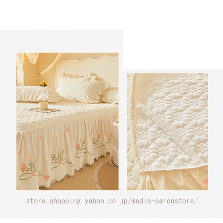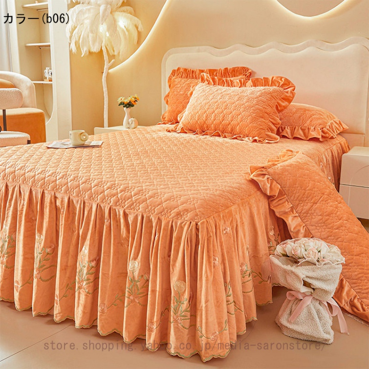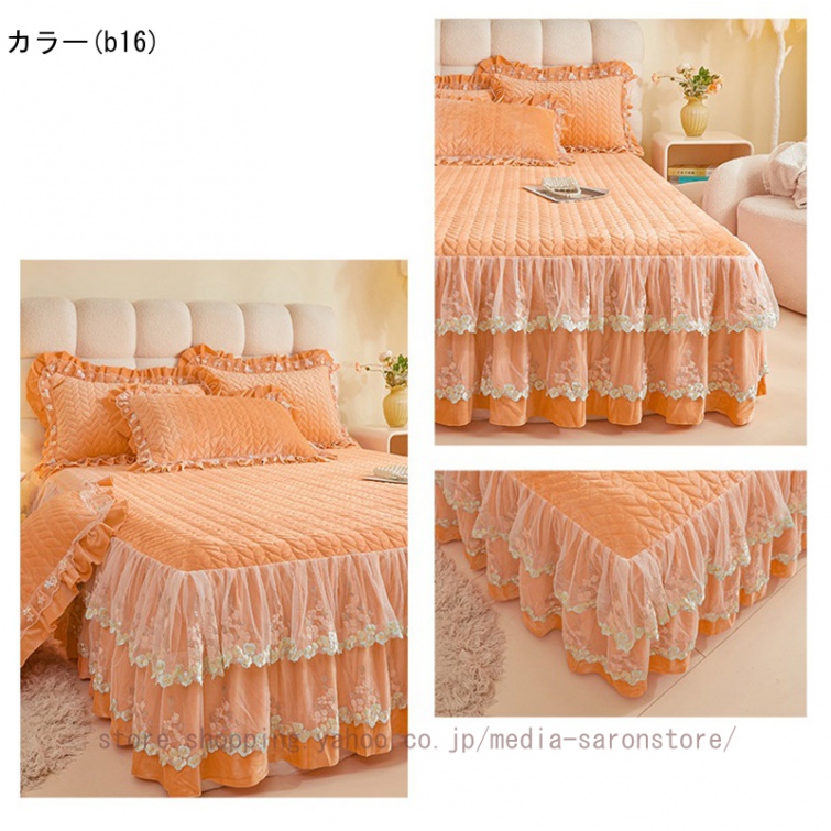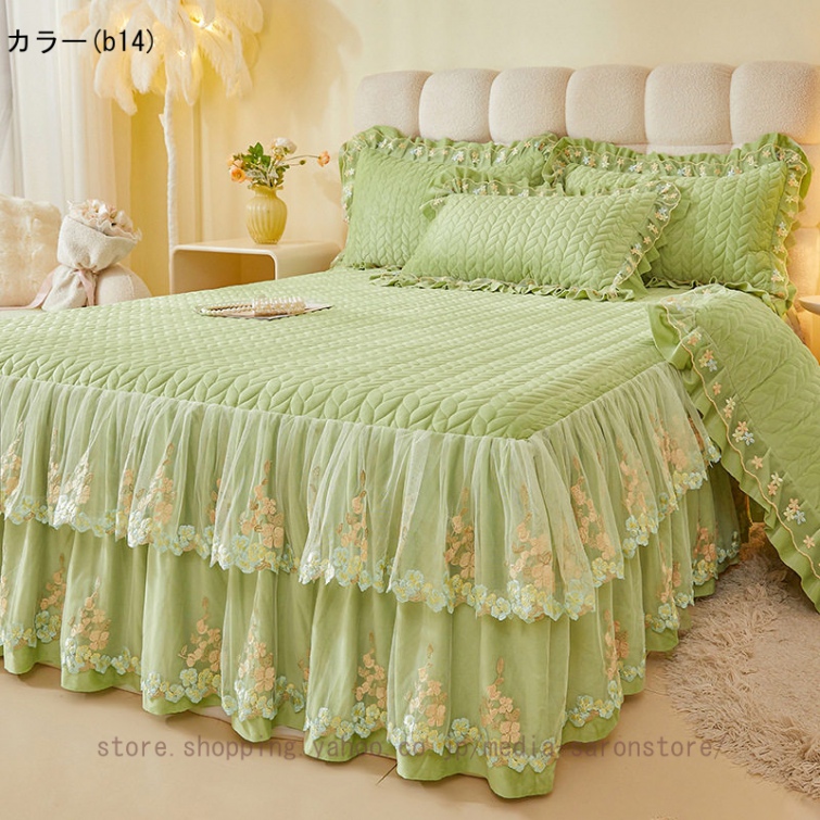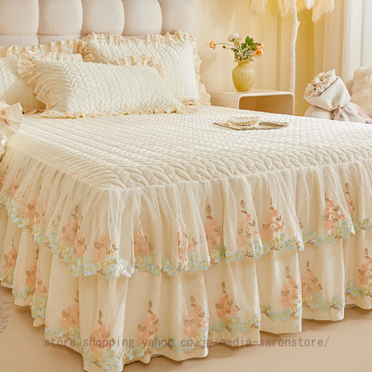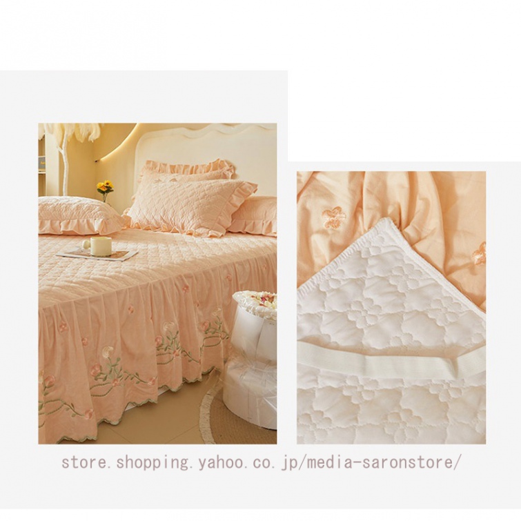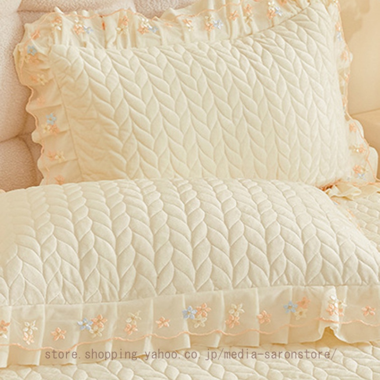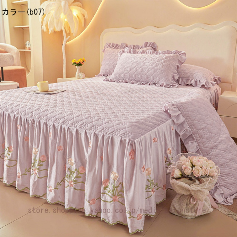 ベッドスカート 枕カバー 中綿 フランネル ふわふわ 暖かい 厚手 可愛い花レース 姫系 フリル ダブル クイーン 上品 きれいめ シーツセット ベッドカバー