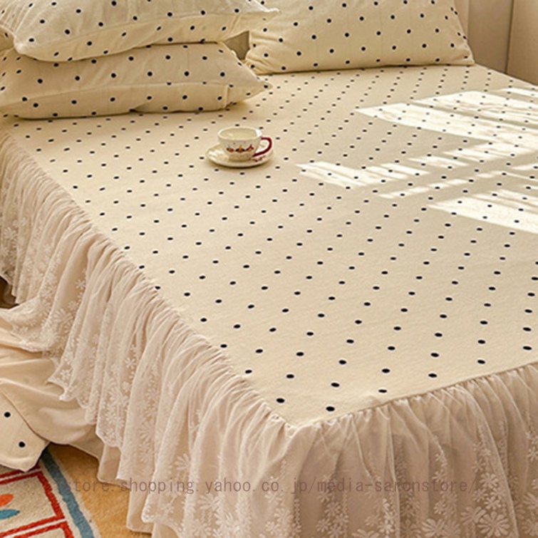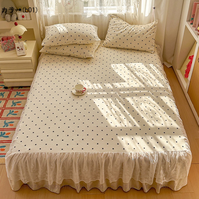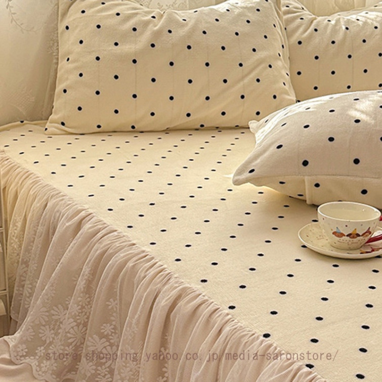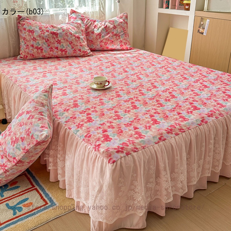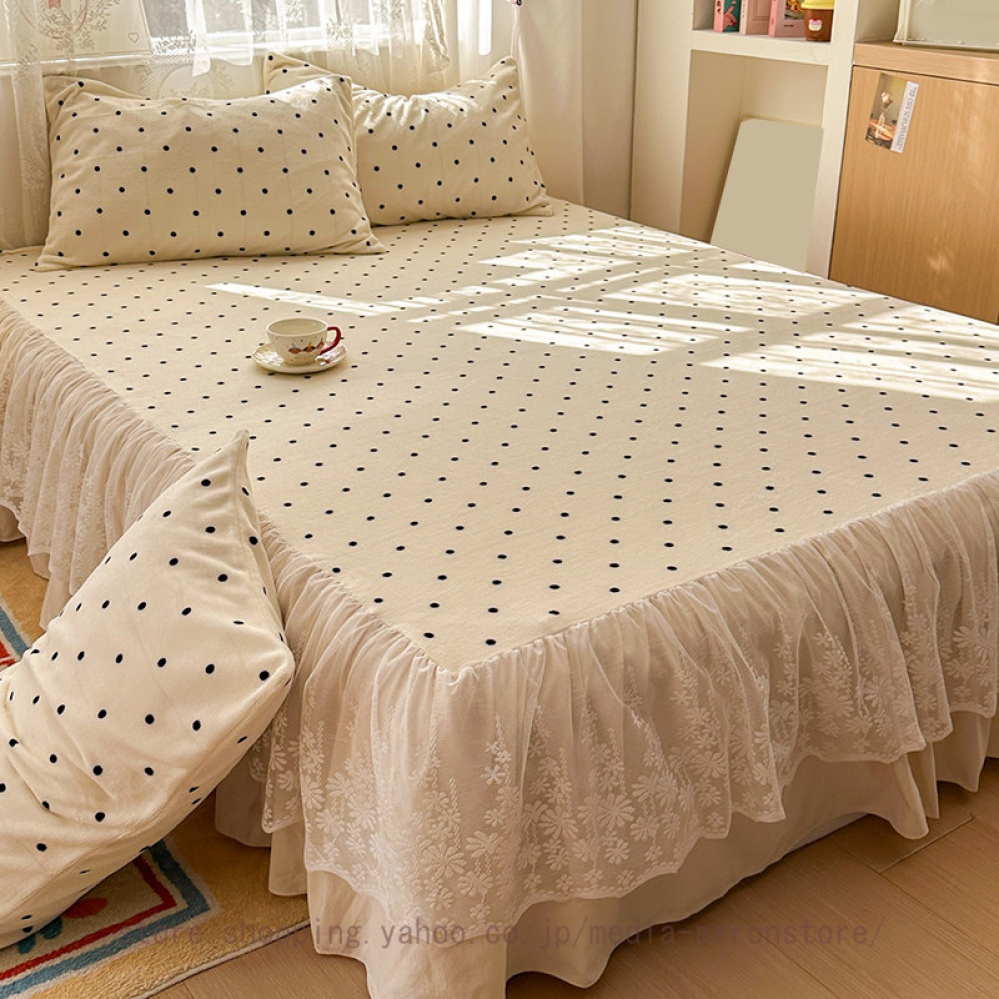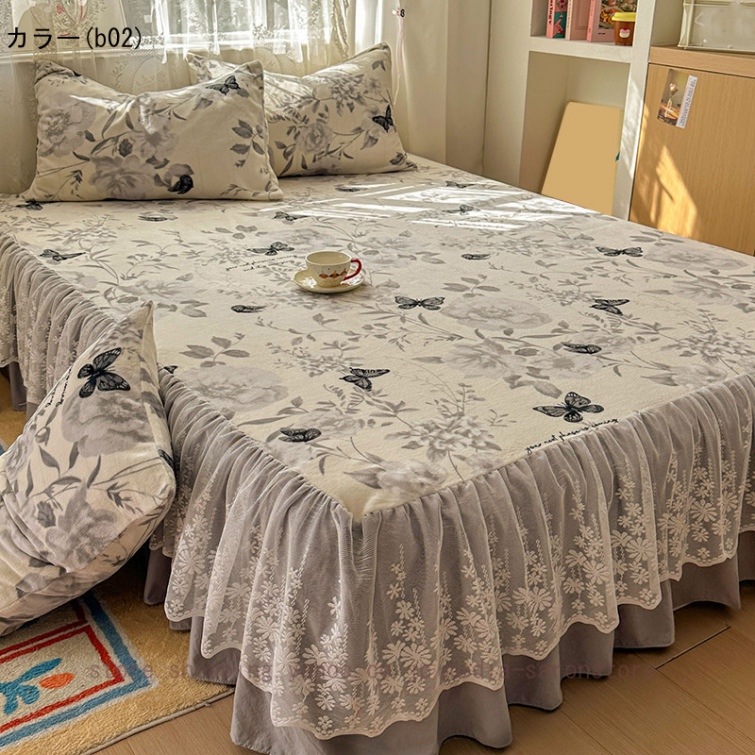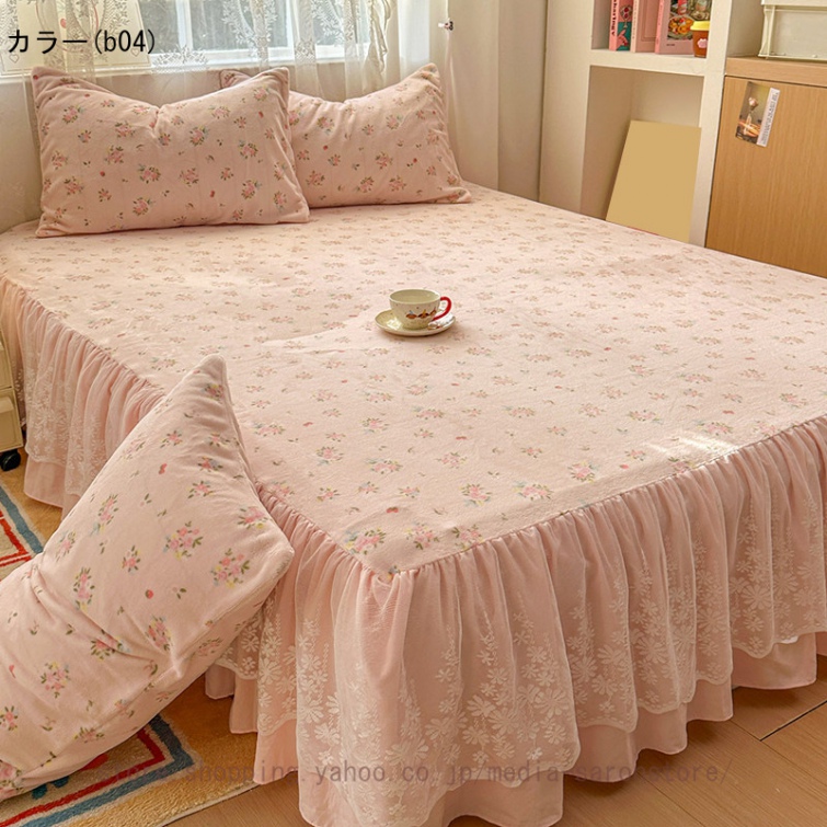ベッドスカート 2点枕カバー フランネル 具カバー 上品 厚め 姫系 レース ベッドカバー 秋冬 暖かい 柔らか レース フリル 柔らか マットレスカバー