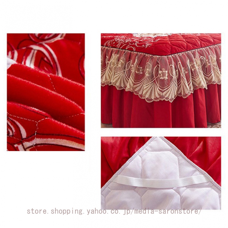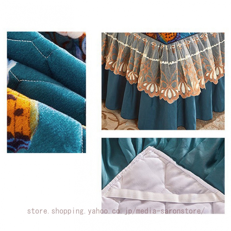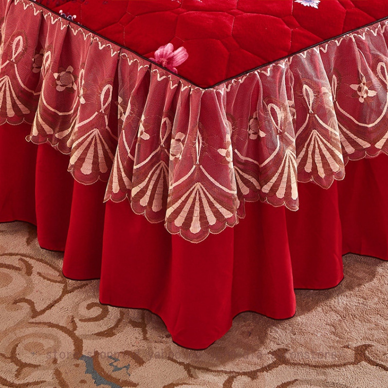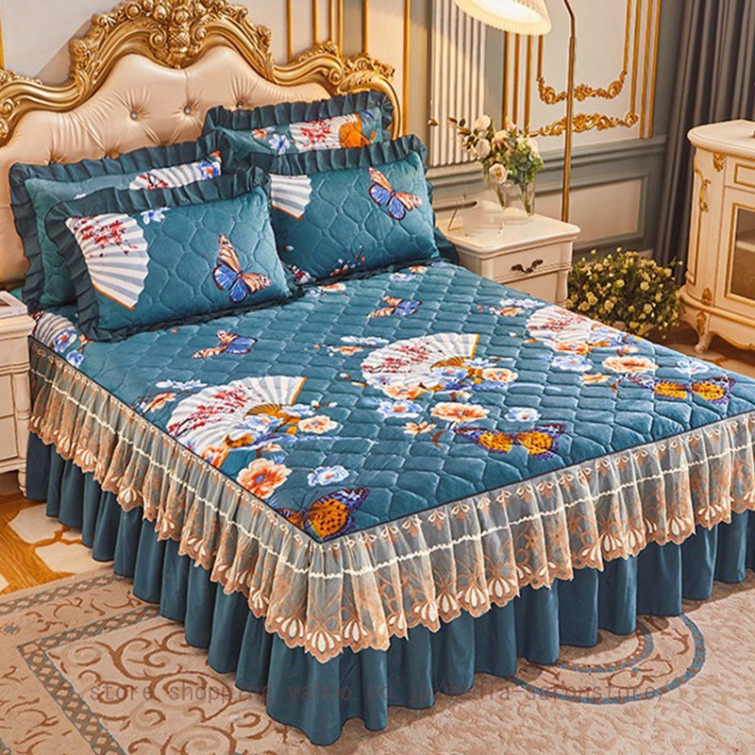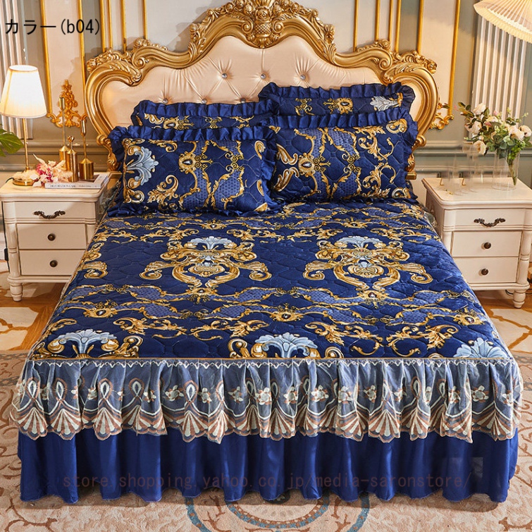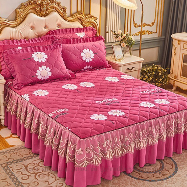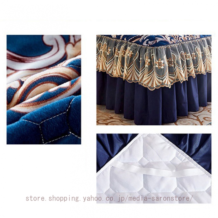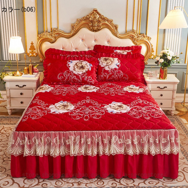 ベッドスカート 2点枕カバー フランネル キルティング 中綿 上品 厚め 姫系 レース ベッドカバー 秋冬 暖かい レース フリル 柔らか ダブル マットレスカバー