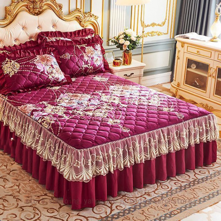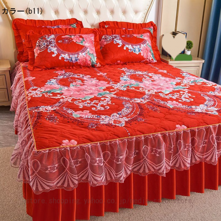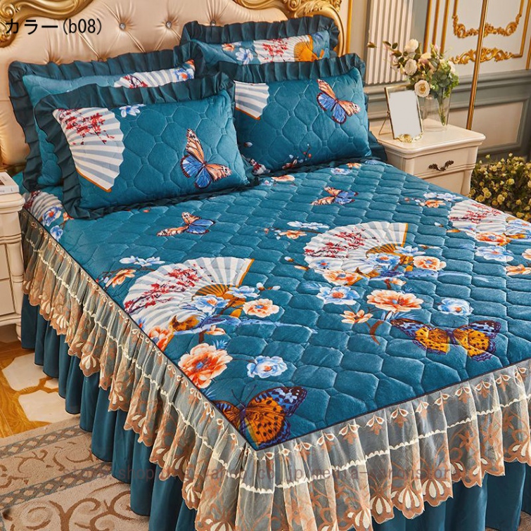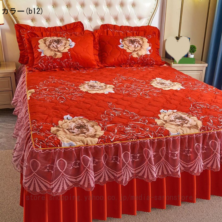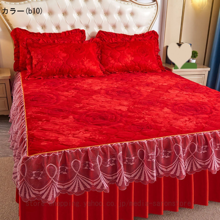 ベッドスカート シングル セミダブル ベッドカバー フリル 敷シーツ 中綿 無地 丸洗い 耐久性 やわらか 寝具カバー かわいい 北欧風 ベッド シーツエレガント